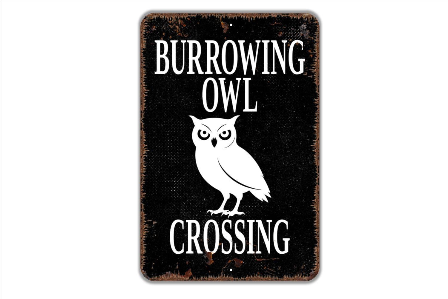 Burrowing Owl Crossing Sign - Owls Burrow Caution Notice Metal Wall Art - Indoor or Outdoor