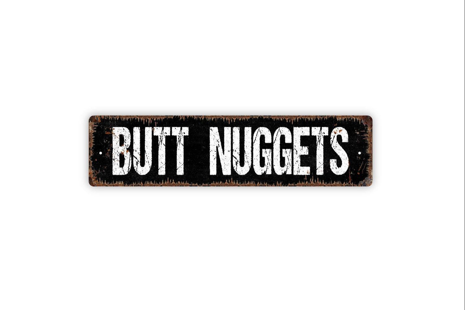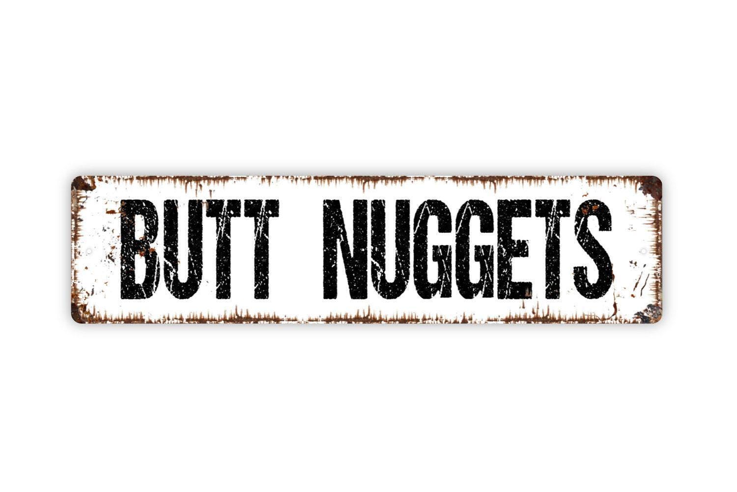 Butt Nuggets Sign - Chicken or Duck Fresh Eggs Sign - Kitchen Vinyl Sticker Or Custom Metal Street Sign or Door Name Plate Plaque