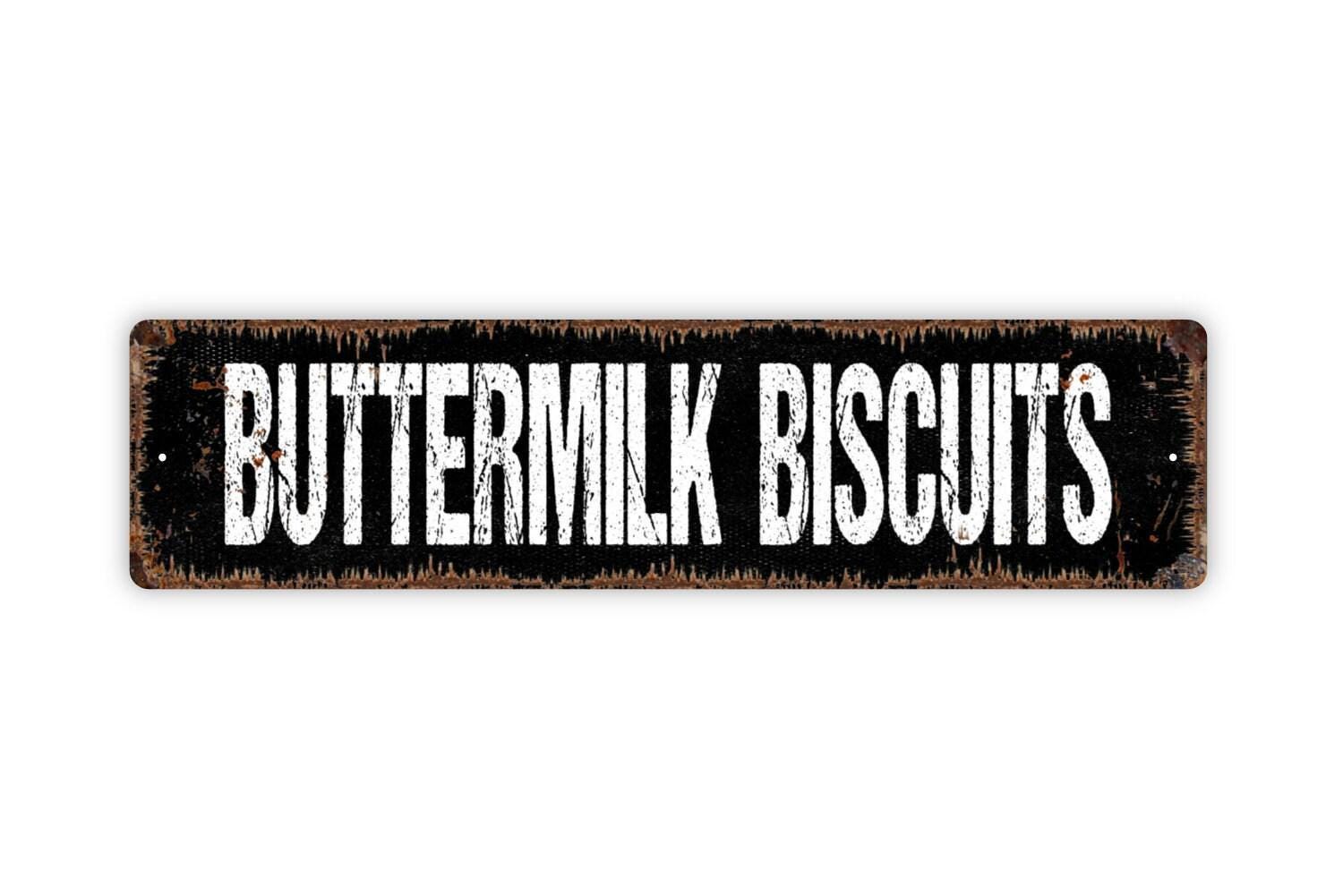 Buttermilk Biscuits Sign - Bakery Breakfast Baked Goods Kitchen Vinyl Sticker Or Street Metal Sign or Door Name Plate Plaque