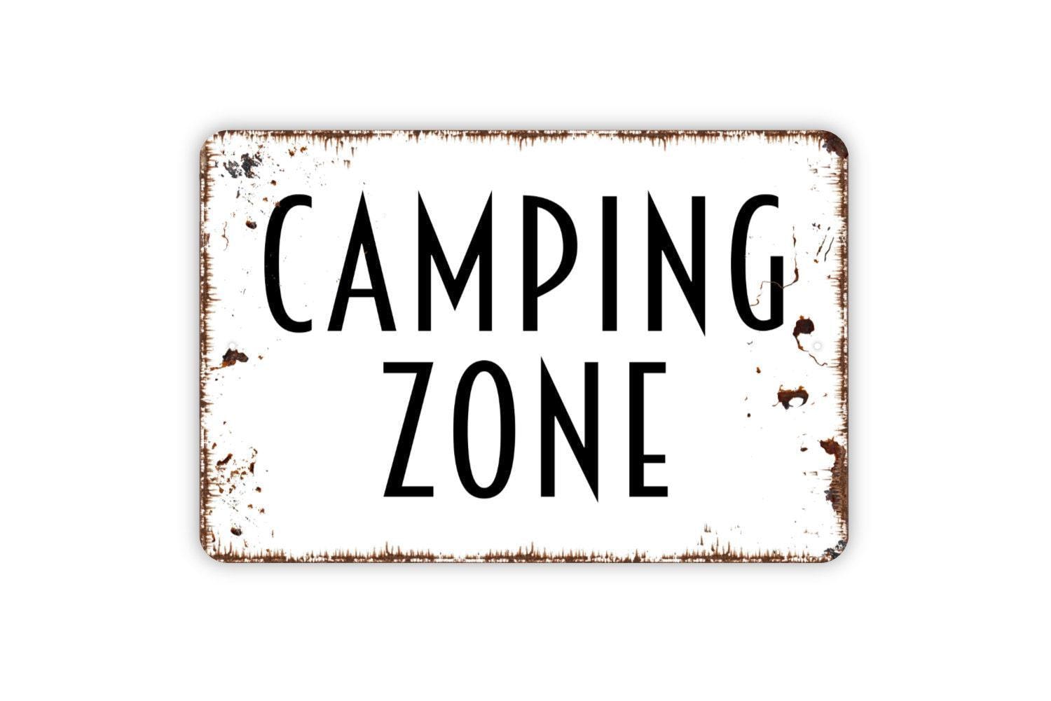 Camping Zone Sign | Rustic Outdoor Adventure Wall Decor | Metal Sign or Vinyl Sticker for RV Tent Cabin Campground