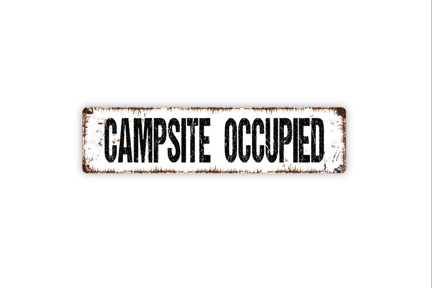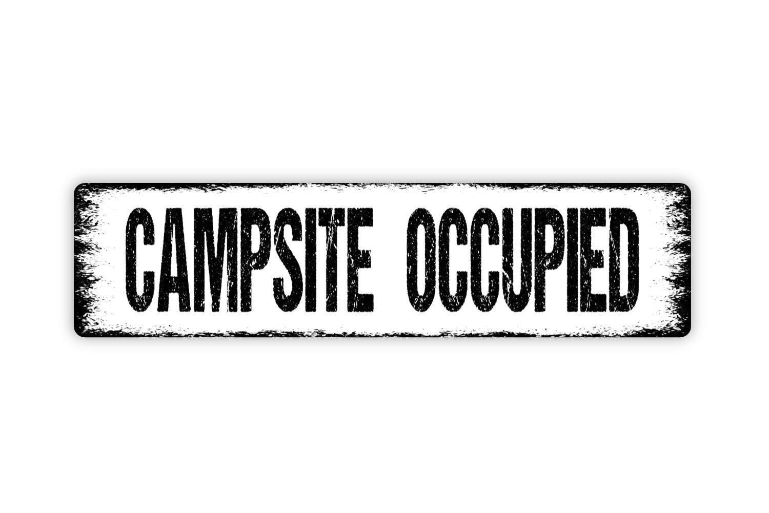 Campsite Occupied Sign - Camping Camper RV Travel Trailer Tent Reserved Vinyl Sticker Or Street Metal Sign or Door Name Plate Plaque