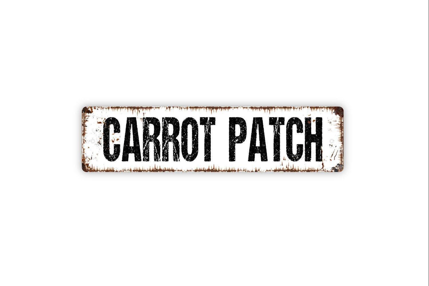 Carrot Patch Sign - Vegetables Garden Marker Produce Farmers Market Bunny Rabbit Rustic Street Metal Sign or Door Name Plate Plaque