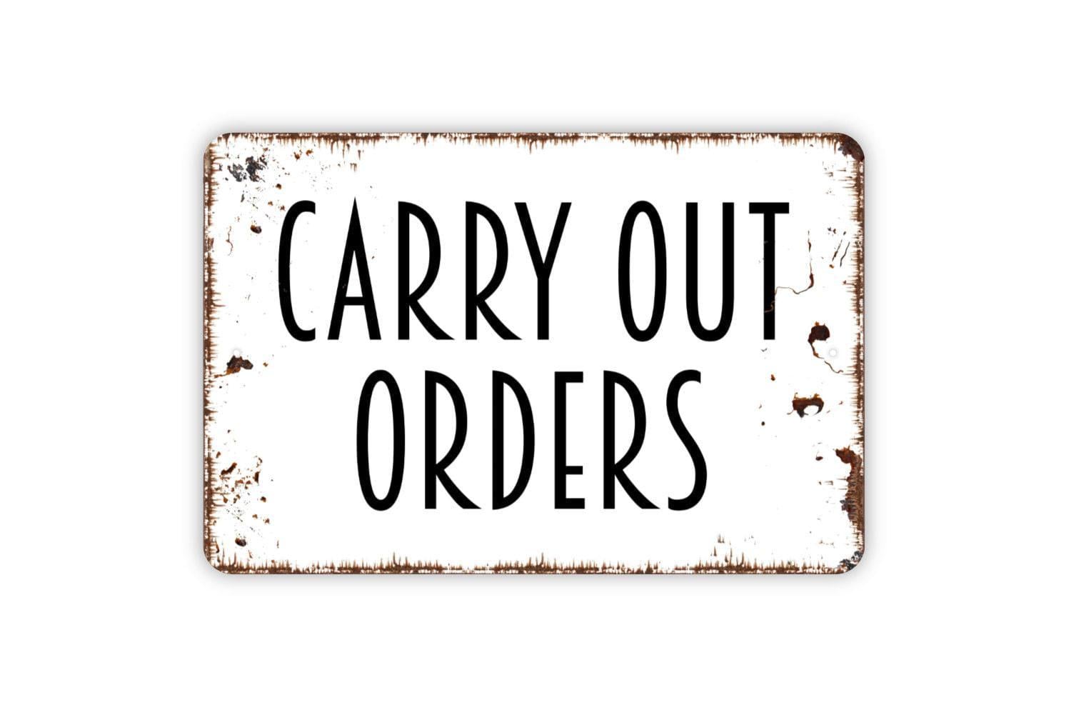 Carry Out Orders Sign | Rustic Restaurant Wall Decor | Takeout Counter Sign | Custom Metal Sign or Vinyl Sticker | Cafe or Diner Wall Art