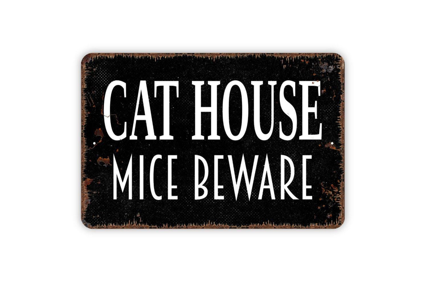 Cat House Mice Beware Sign - Metal Wall Art - Indoor or Outdoor