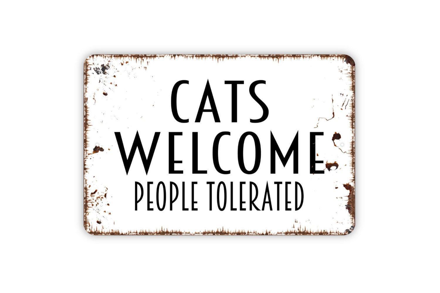 Cats Welcome People Tolerated Sign, Metal Sign, Farmhouse Contemporary Modern Wall Metal Sign