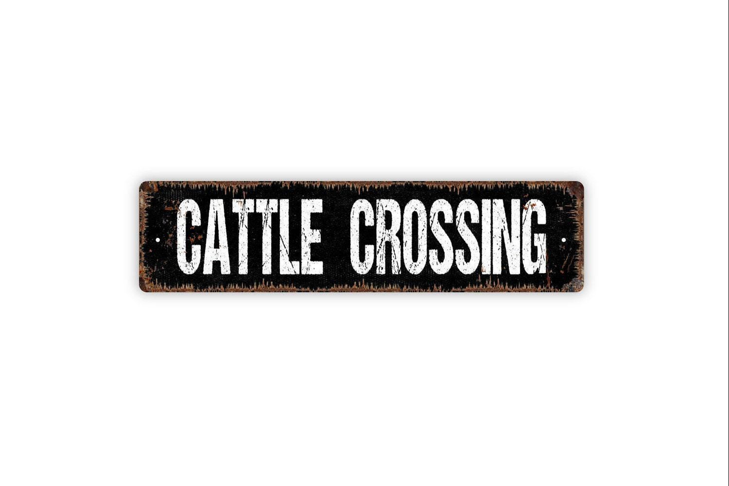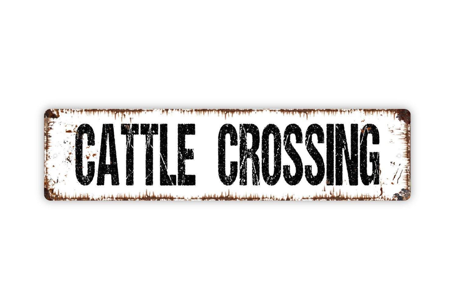 Cattle Crossing Sign Metal or Vinyl Sticker | Rustic Farmhouse Wall Art | Ranch Barn Decor | Cowboy Western Sign | Country Farm Wall Decor