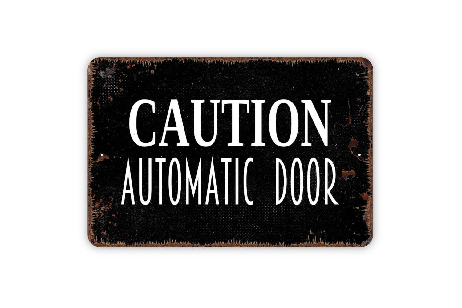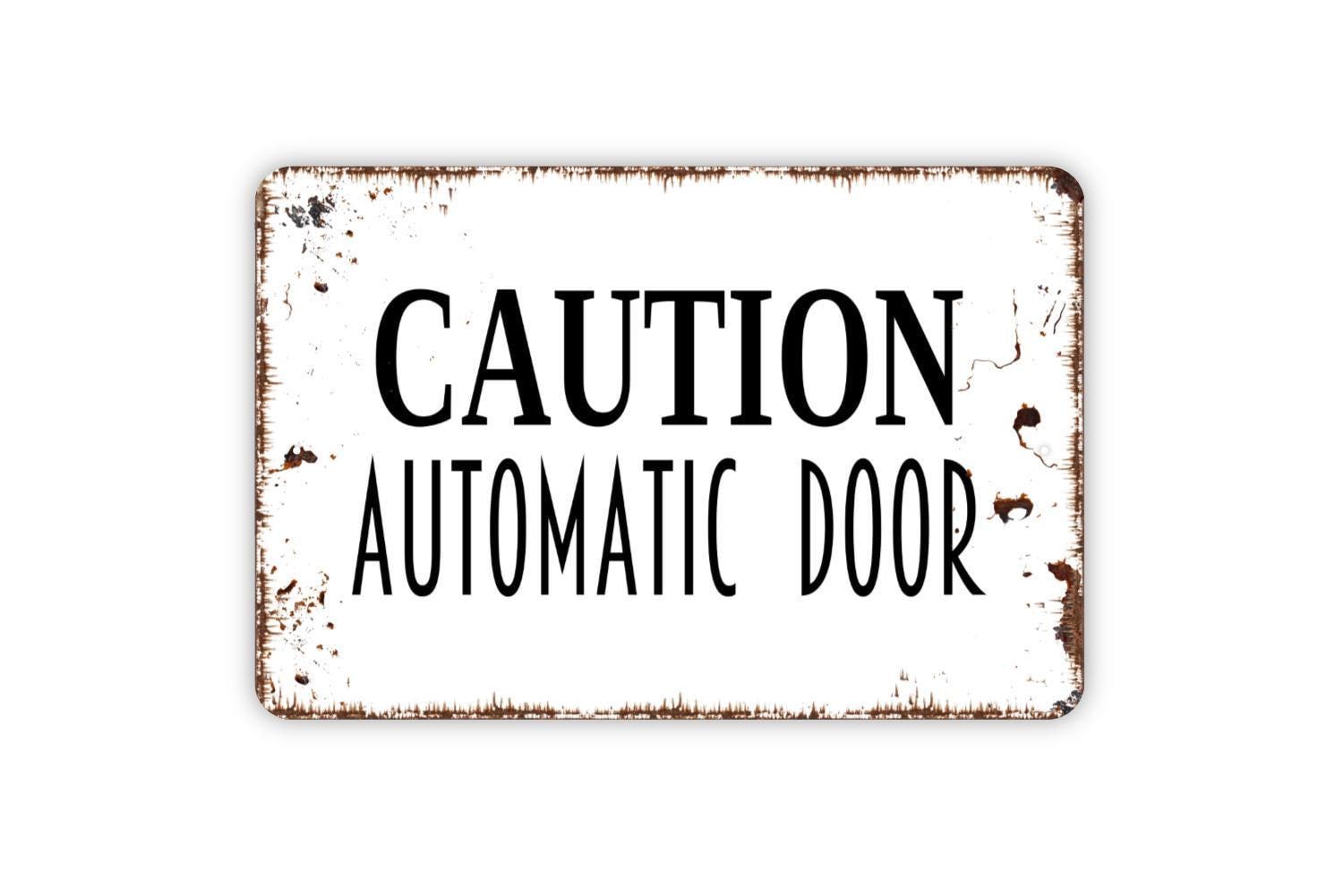 Caution Automatic Door Sign | Safety Warning Entryway Notice | Metal Sign or Vinyl Sticker for Store Office School Business