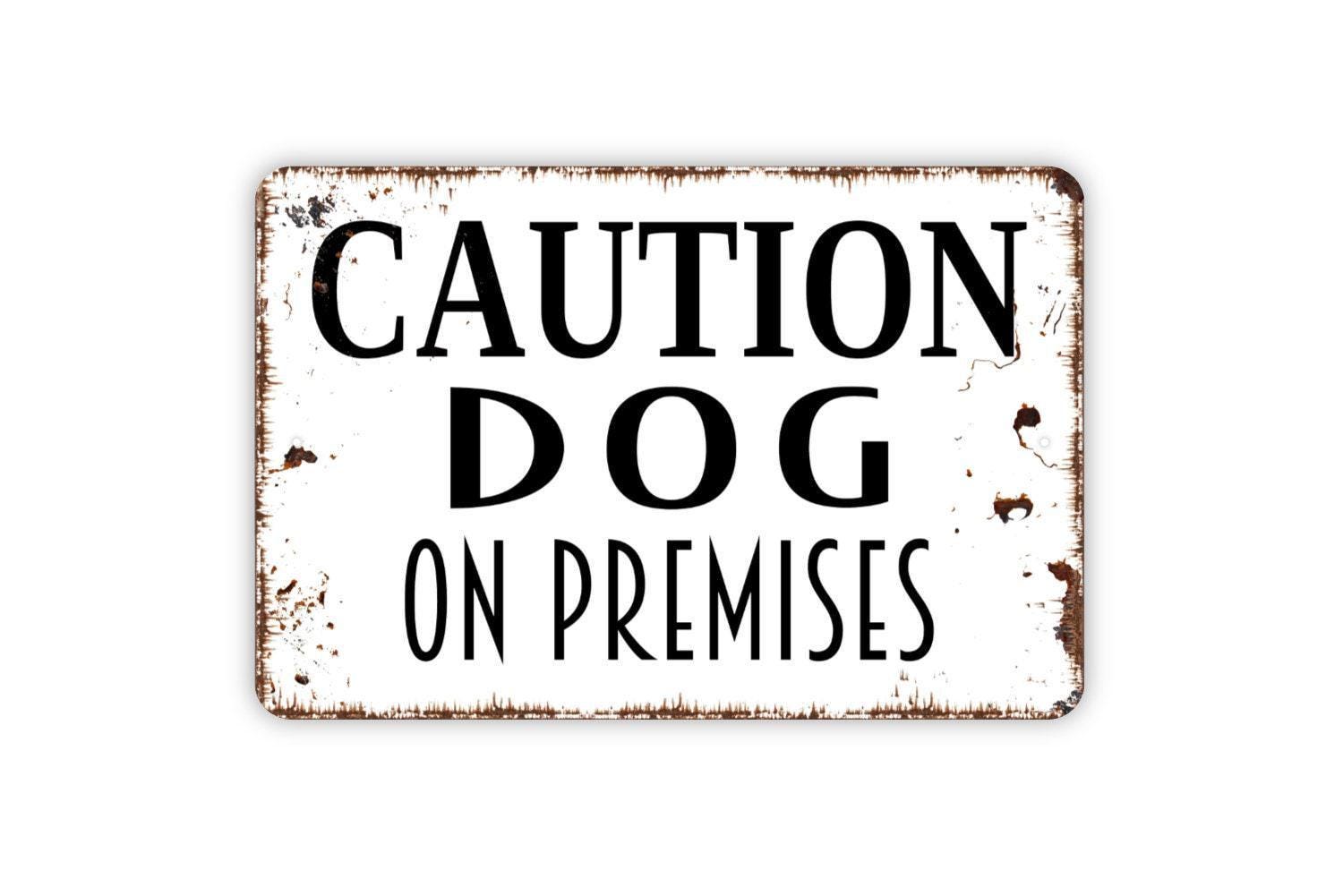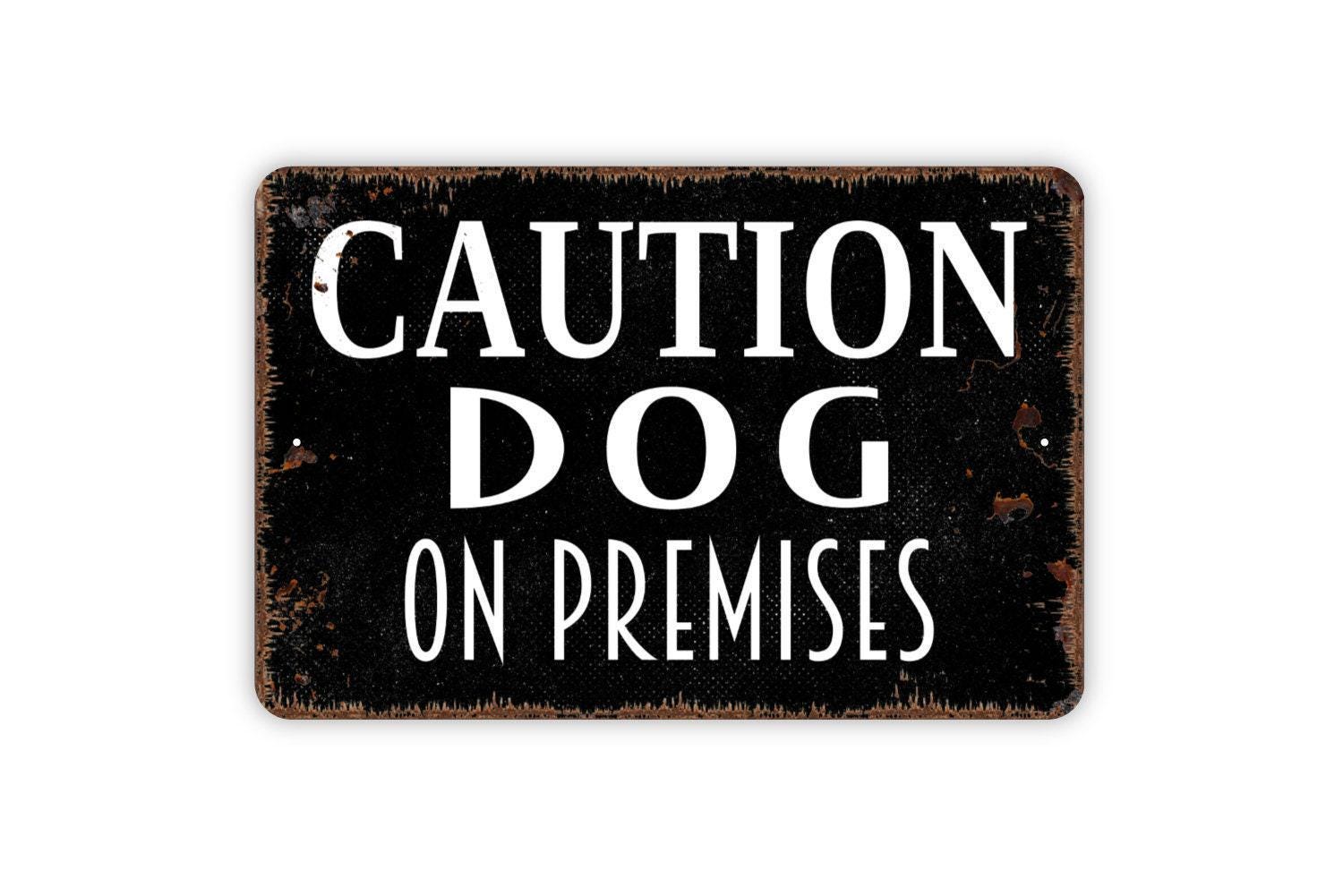 Caution Dog On Premises Sign - Metal Indoor or Outdoor Wall Art