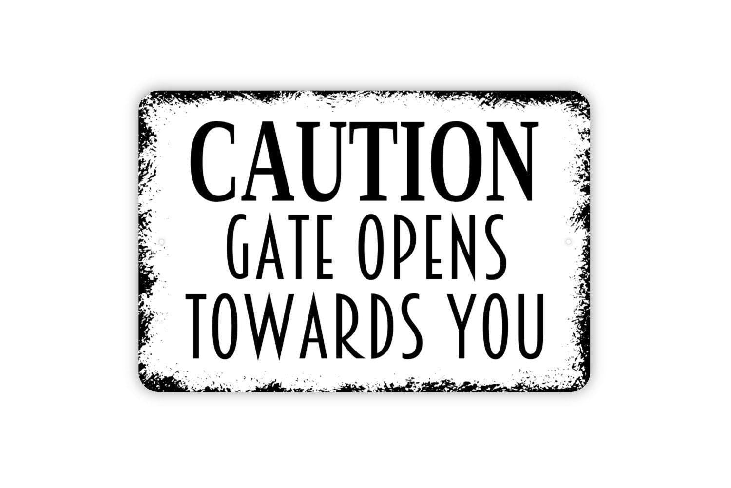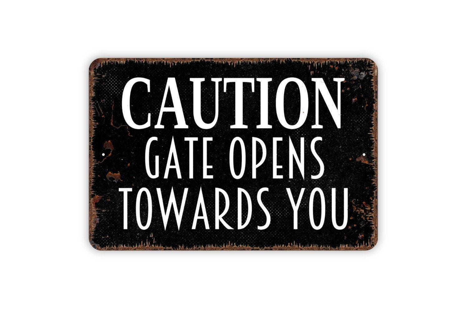 Caution Gate Opens Towards You Sign - Automatic Gate Entrance Fence Outdoor Or Indoor Metal Sign Wall Art
