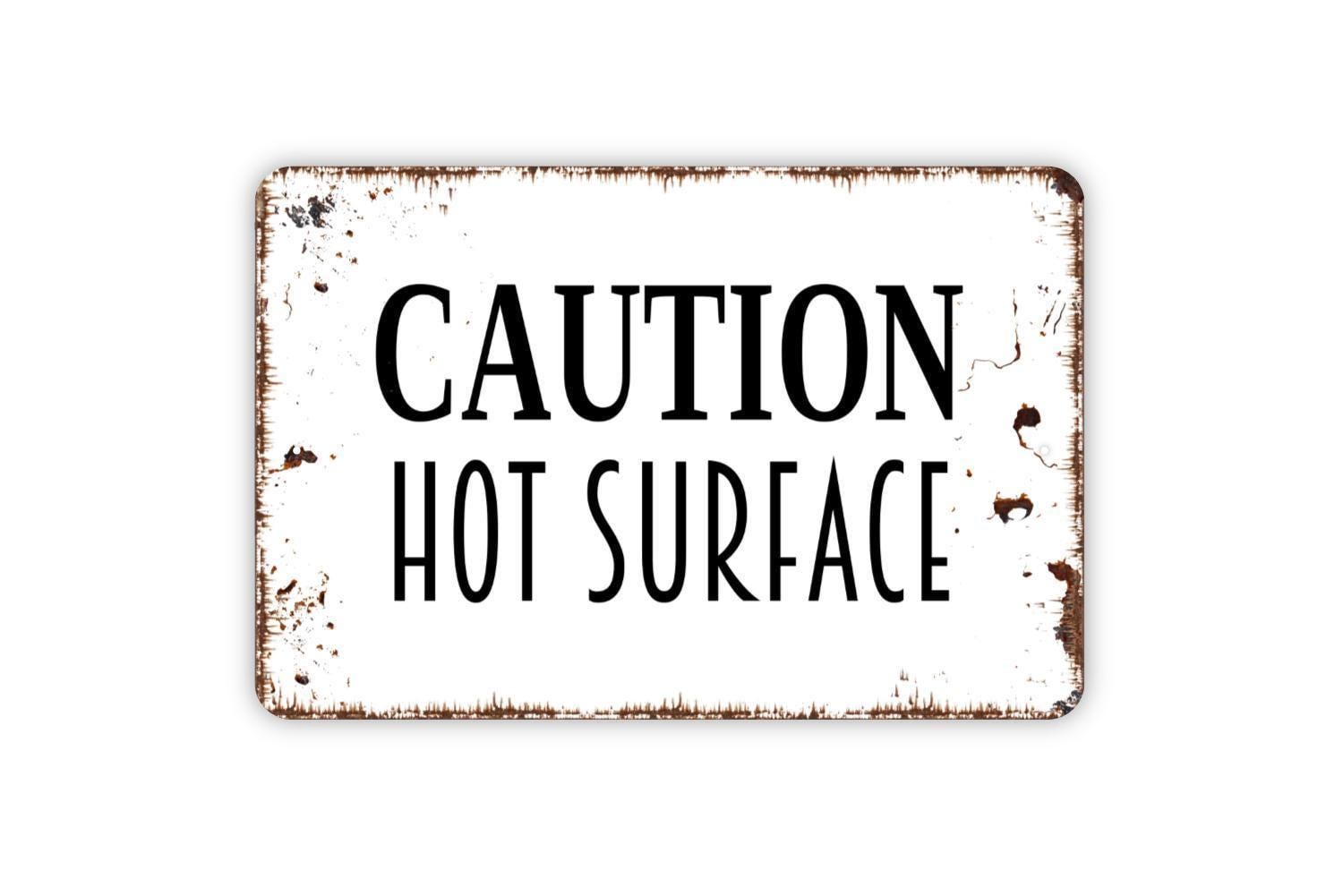 Caution Hot Surface Sign | Rustic Safety Wall Decor | Kitchen or Workplace Warning Sign | Custom Metal Sign or Vinyl Sticker