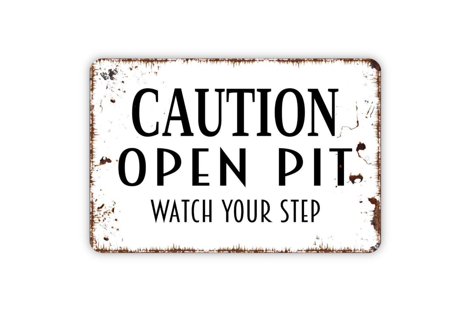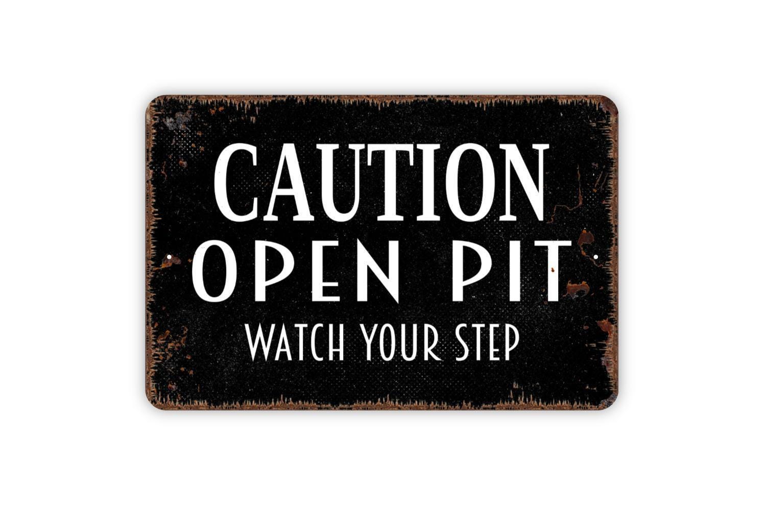 Caution Open Pit Watch Your Step Sign - Notice Warning Beware Ahead Outdoor Or Indoor Metal Sign Wall Art