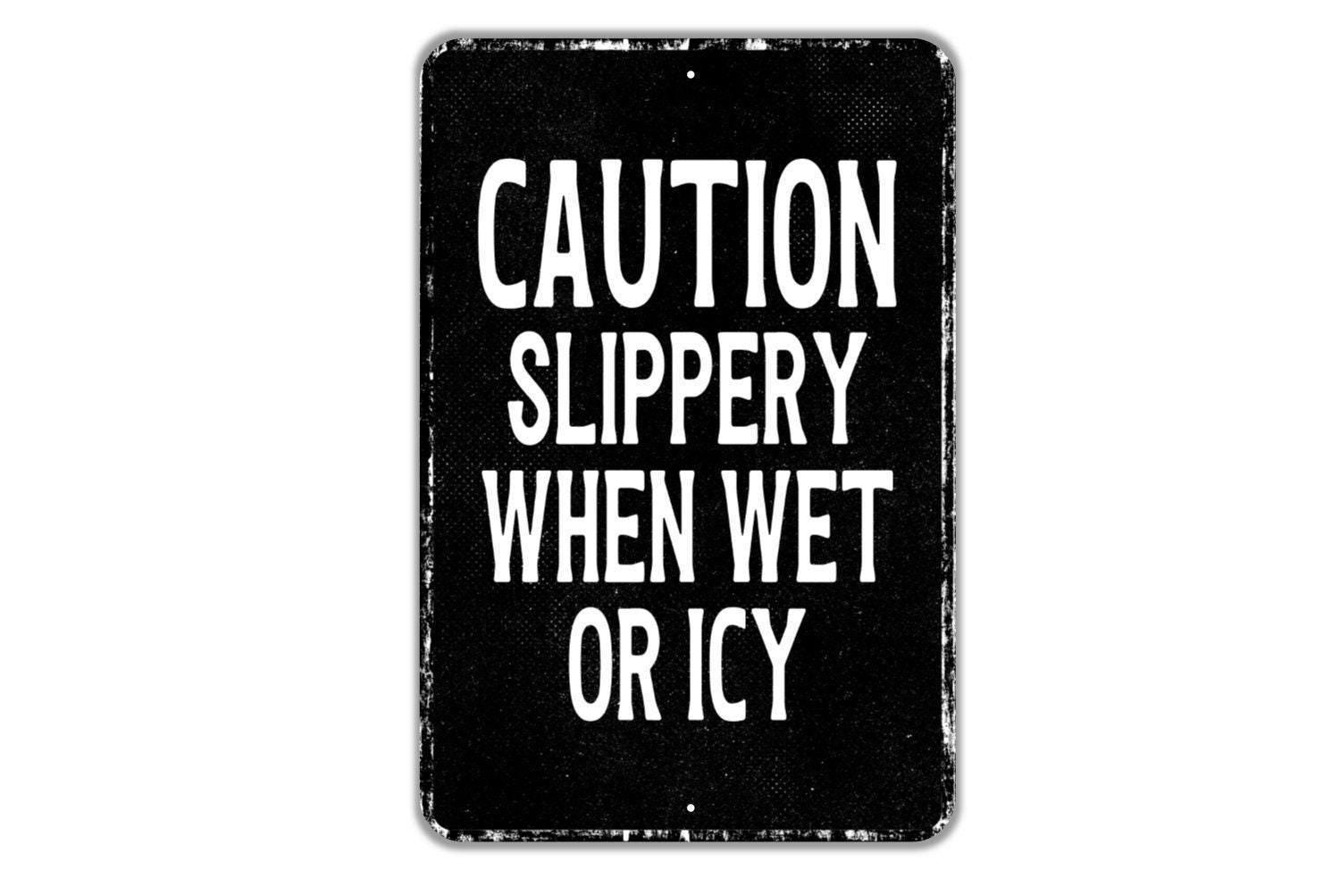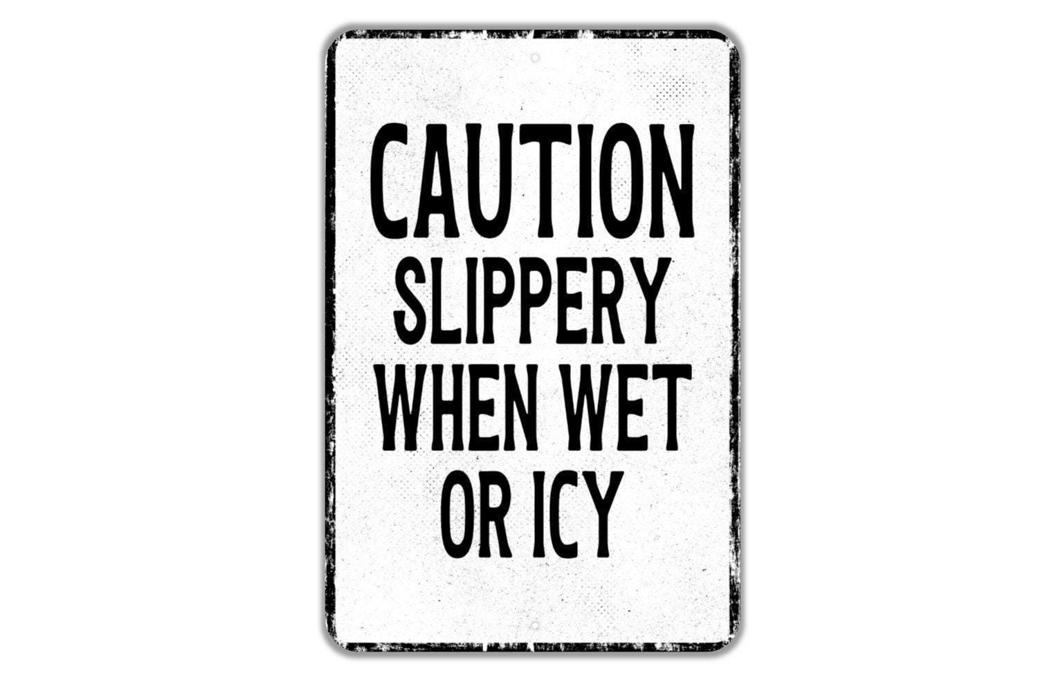 Caution Slippery When Wet Or Icy Sign | Safety Warning Metal Sign or Vinyl Sticker | Workplace, Driveway, Business, Floor, Outdoor Notice