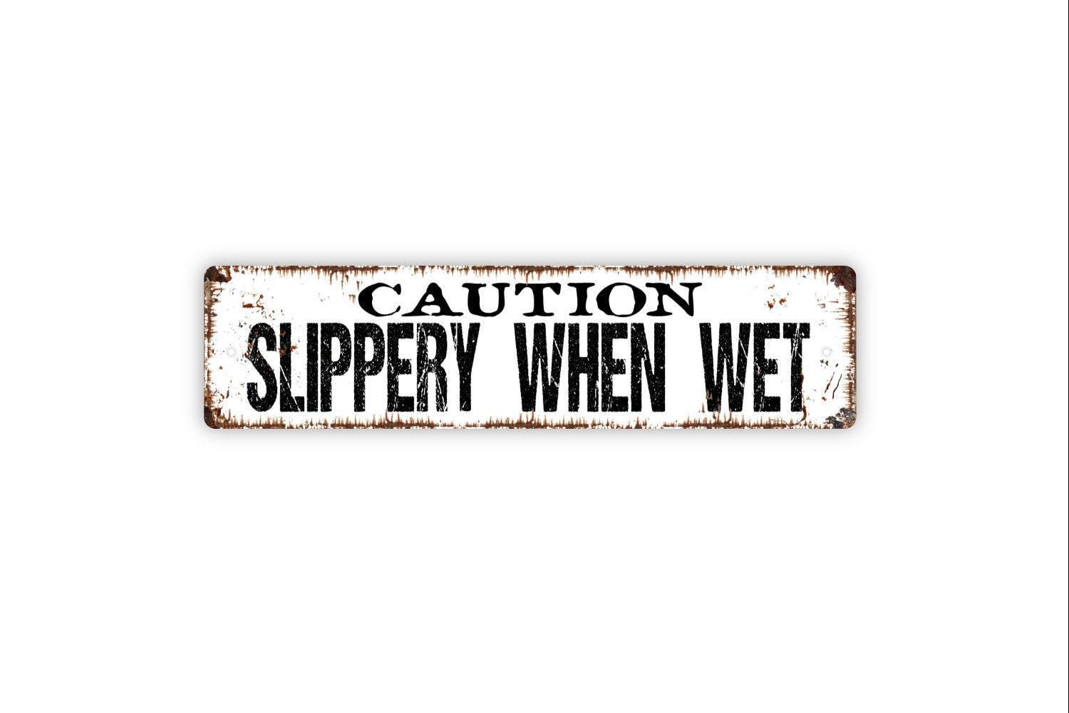 Caution Slippery When Wet Sign - Proceed With Caution Vinyl Sticker Or Metal Street Sign or Door Name Plate Plaque