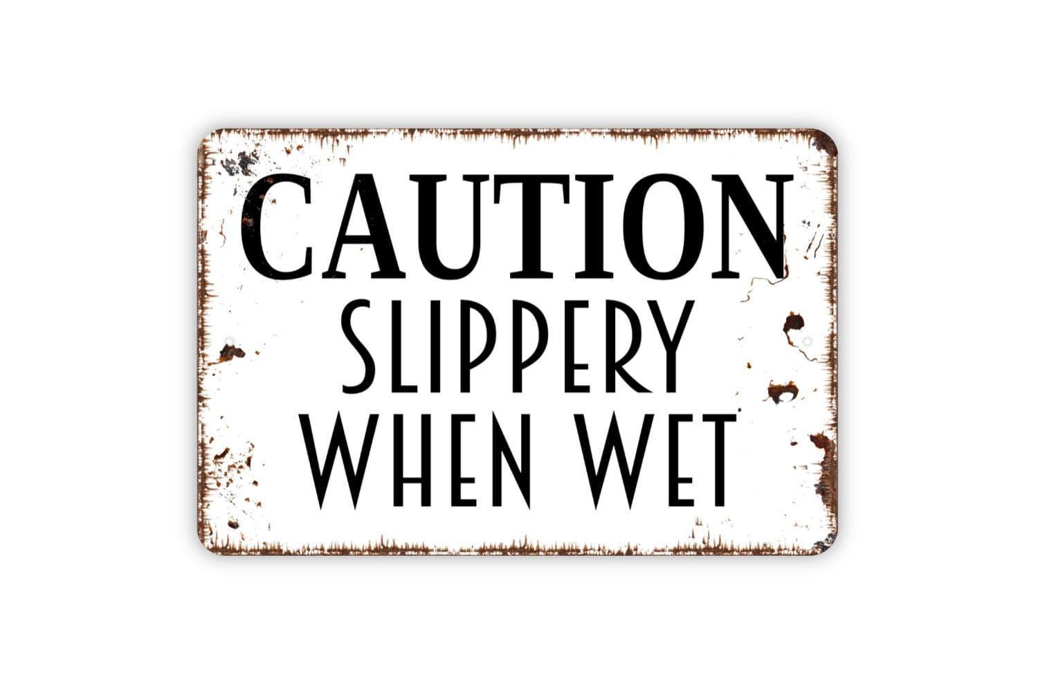 Caution Slippery When Wet Sign - Warning Metal Wall Art - Indoor or Outdoor