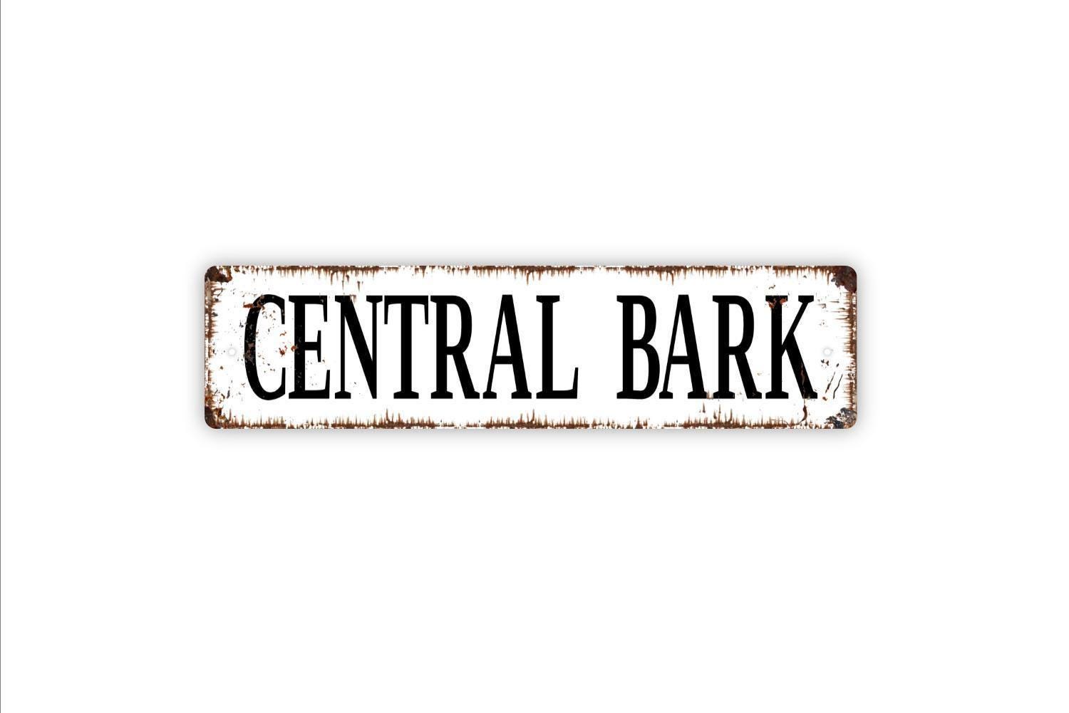 Central Bark Sign - Central Park Dog Park Yard Backyard Playground Vinyl Sticker Or Metal Street Sign or Door Name Plate Plaque