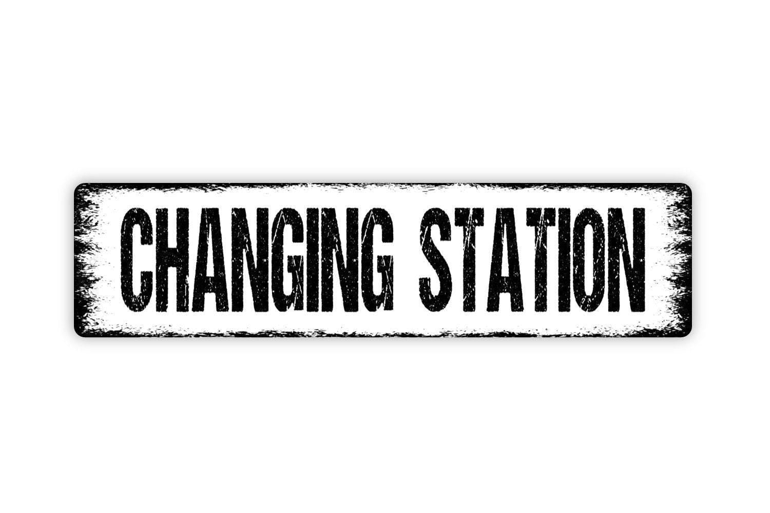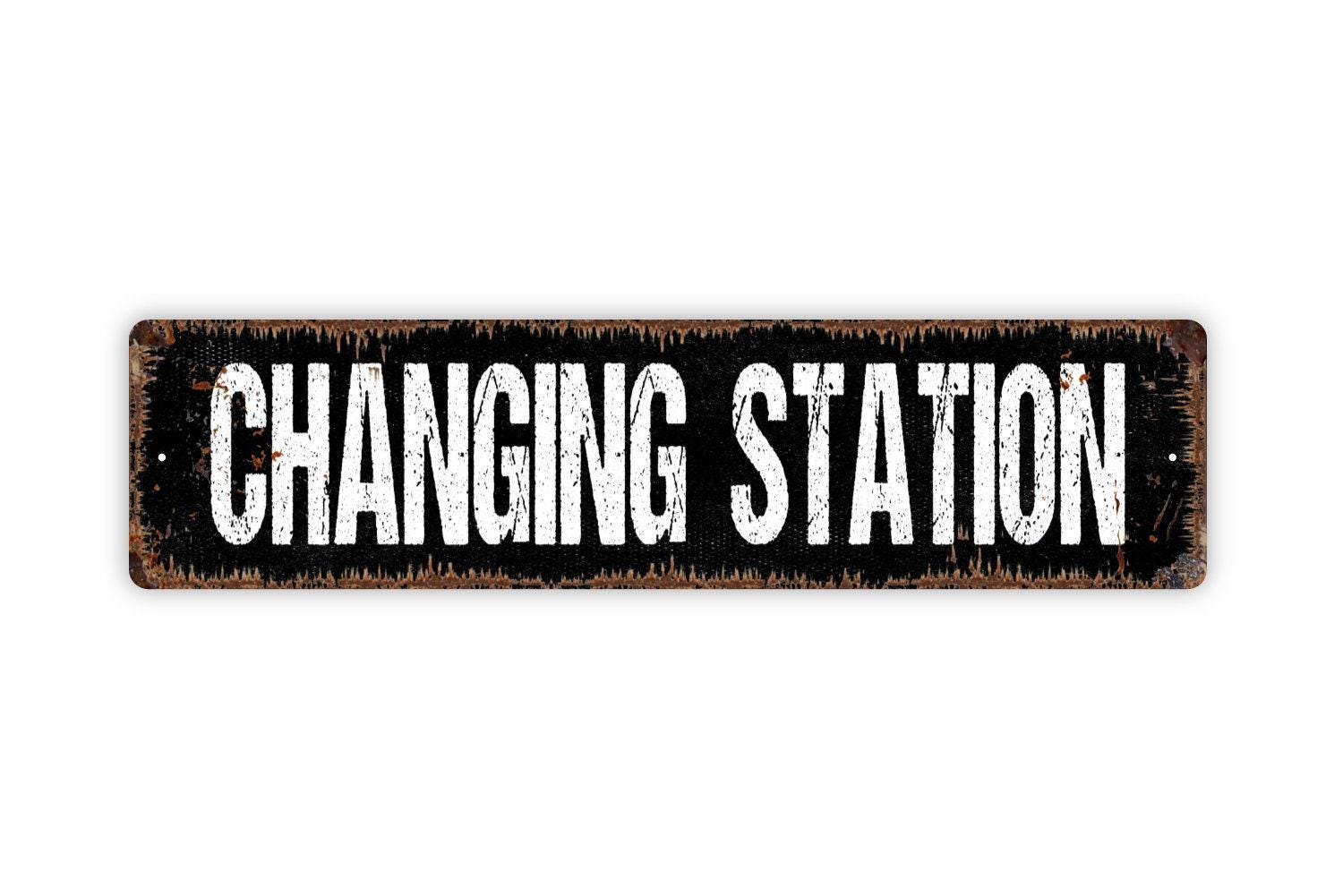 Changing Station Sign - Bathroom Restroom Water Closet El Bano Baby Diaper Room Rustic Street Metal Sign or Door Name Plate Plaque