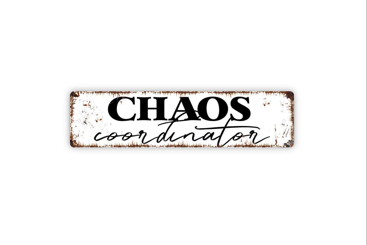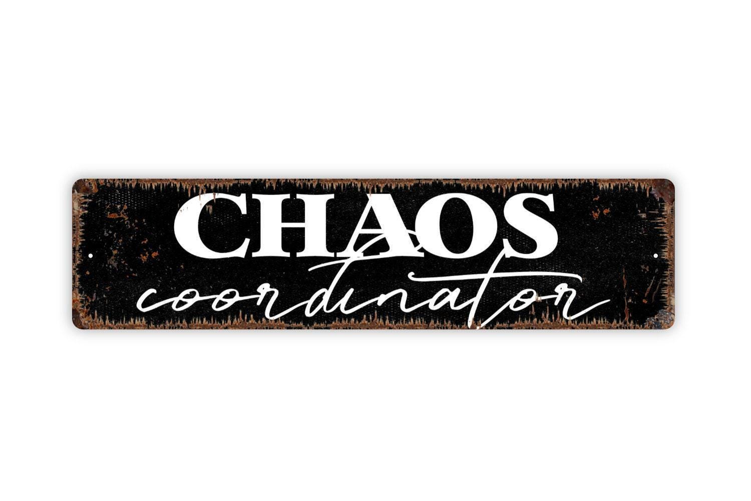 Chaos Coordinator Sign - Funny Teacher Life Or Mom Vinyl Sticker Or Metal Street Sign or Door Name Plate Plaque