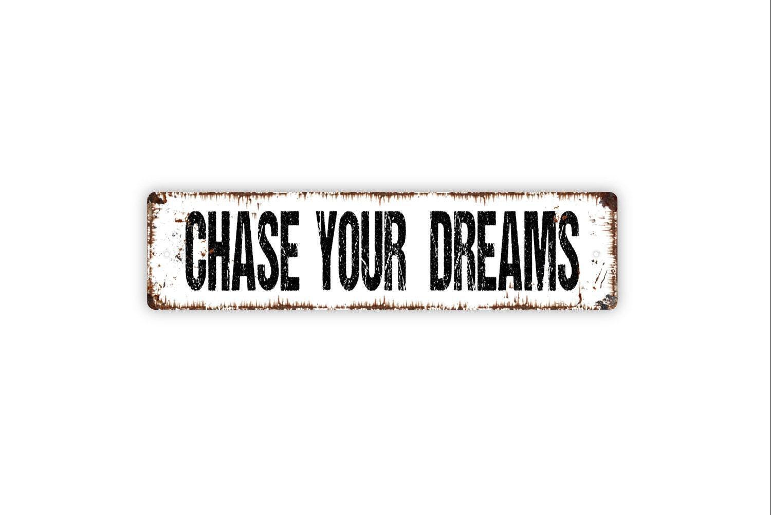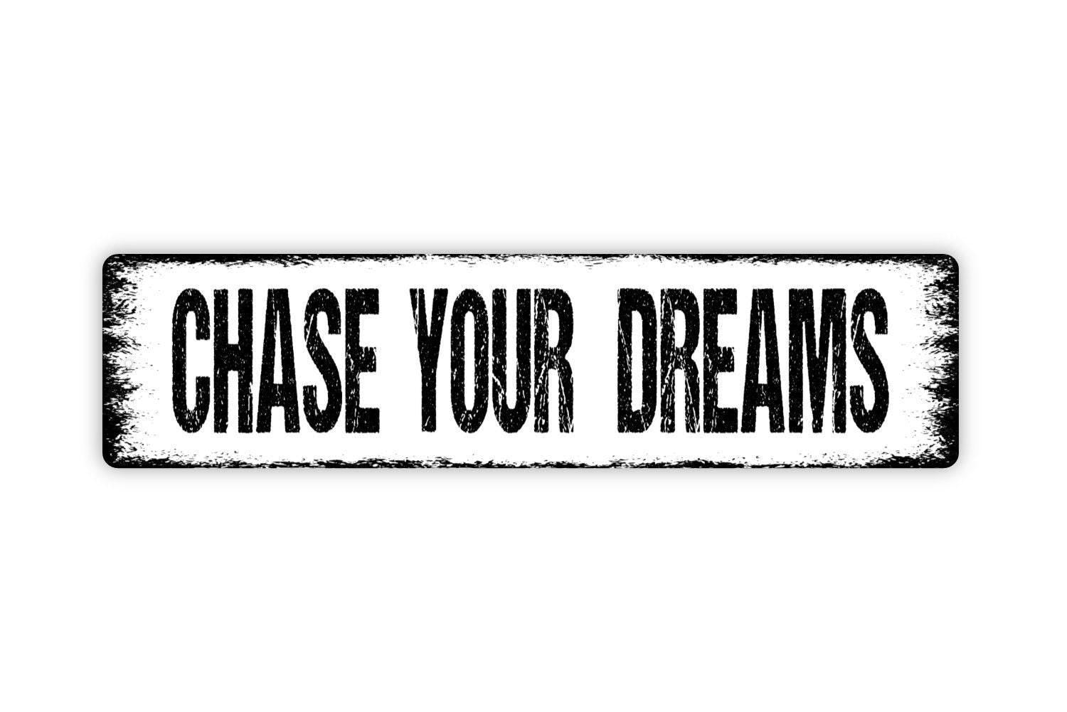 Chase Your Dreams Metal Sign - Affirmation Love Graduation Encouragement Vinyl Sticker Or Street Metal Sign or Door Name Plate Plaque