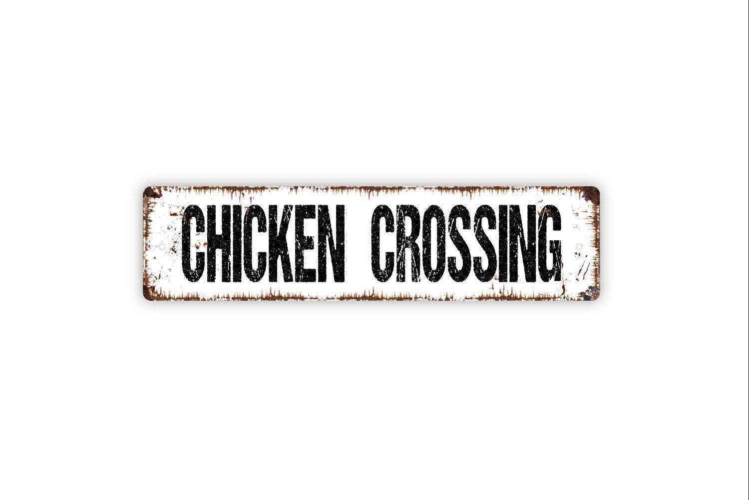 Chicken Crossing Sign - Funny Farm Fresh Butt Nuggets Eggs Hen Rooster Vinyl Sticker Or Street Metal Sign or Door Name Plate Plaque