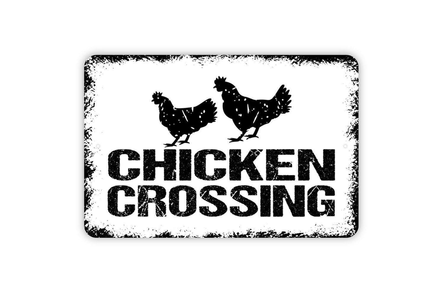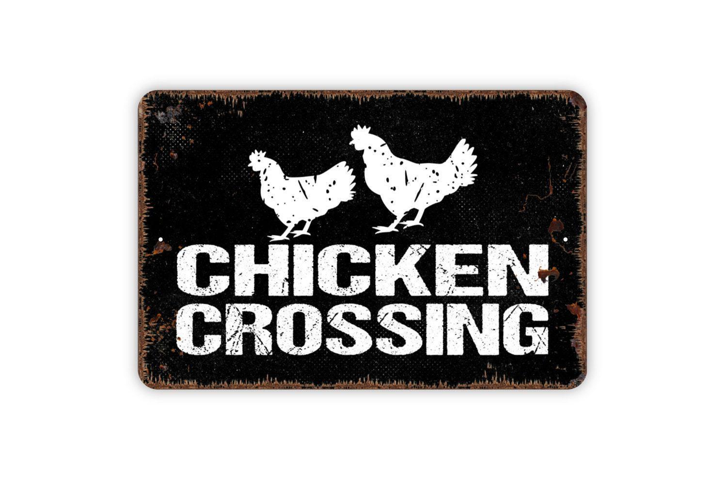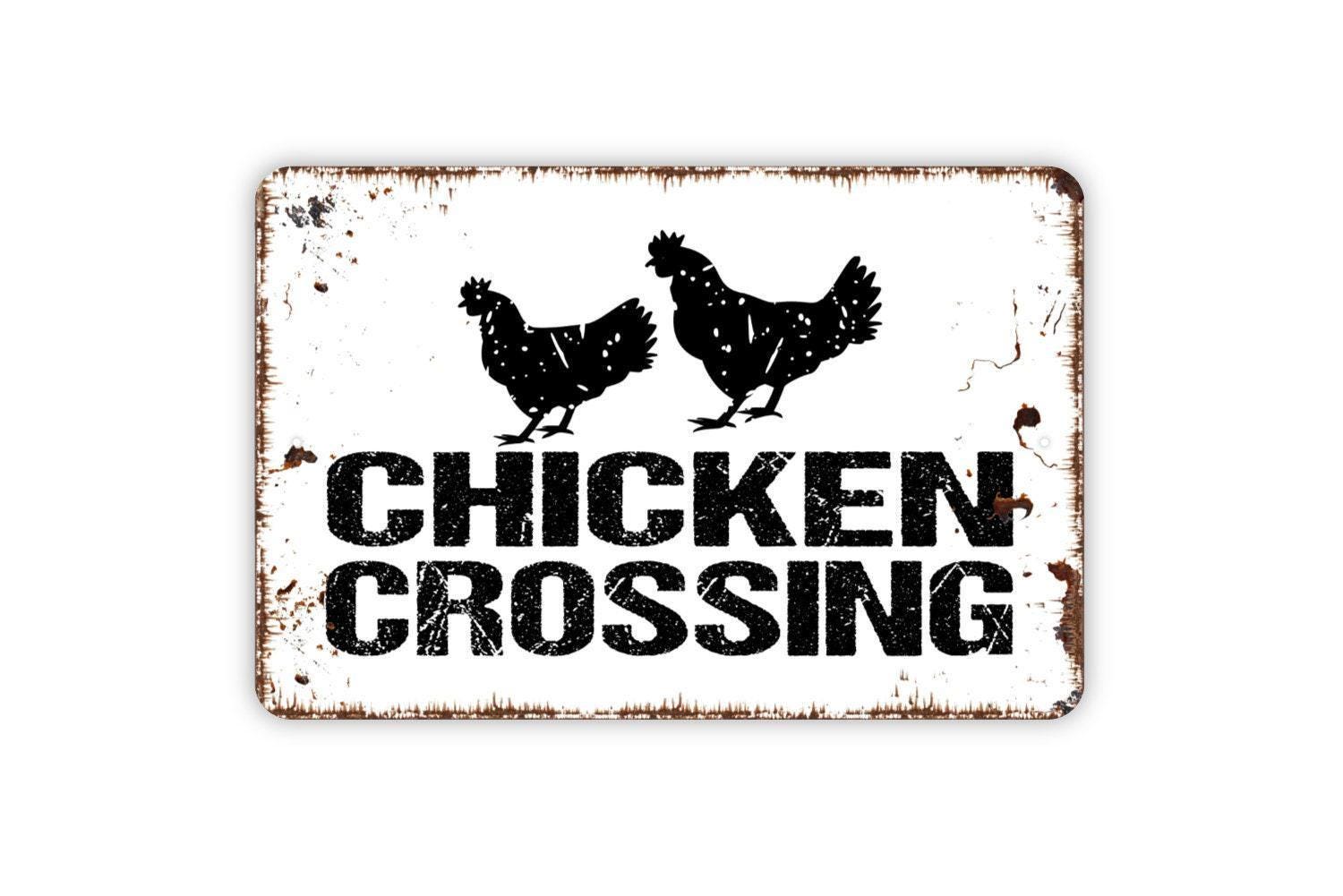 Chicken Crossing Sign – Funny Farmhouse Wall Decor – Rustic Barnyard or Coop Sign – Metal Sign or Vinyl Sticker