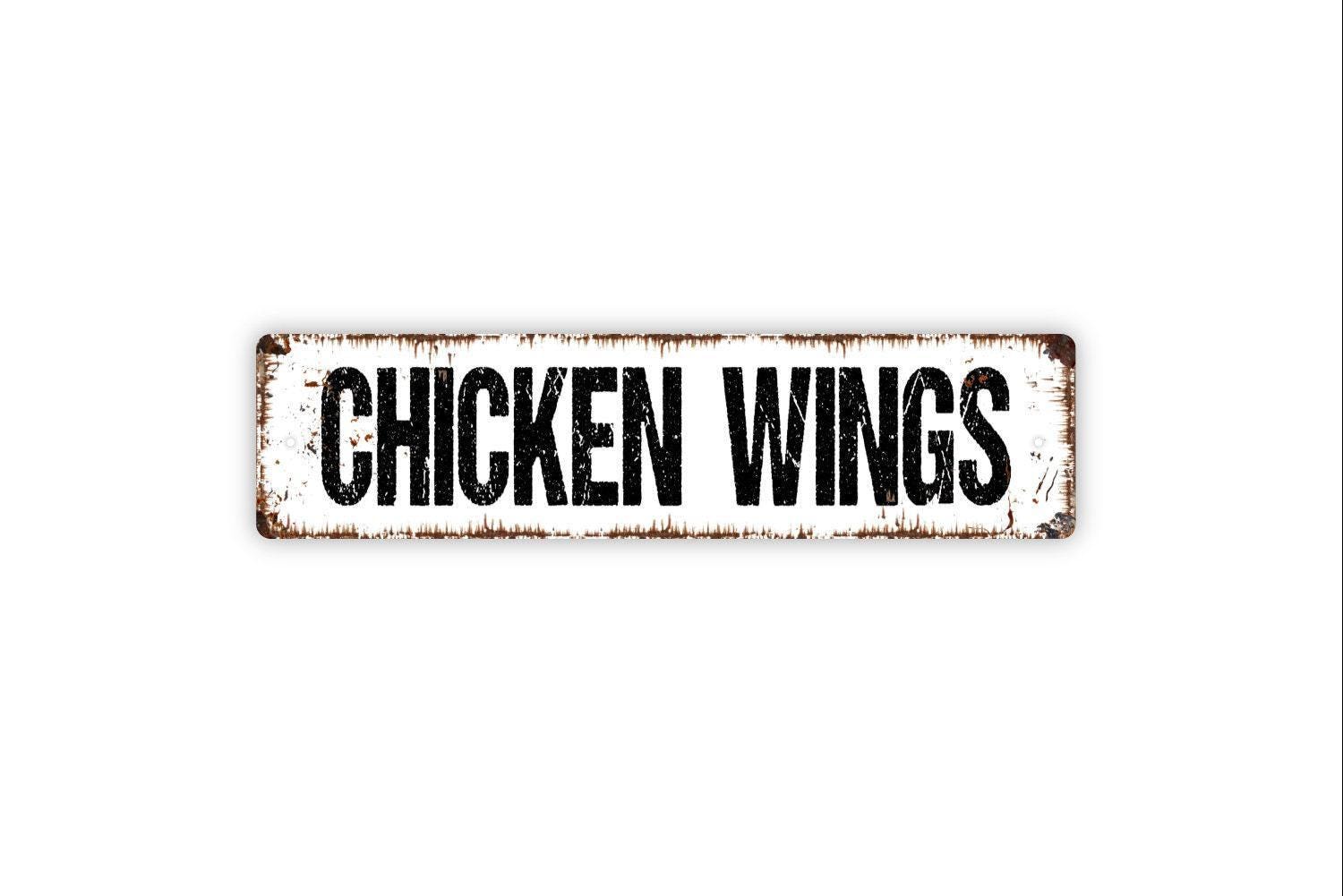 Chicken Wings Sign - Chicken Coop Vinyl Sticker Or Street Metal Sign or Door Name Plate Plaque