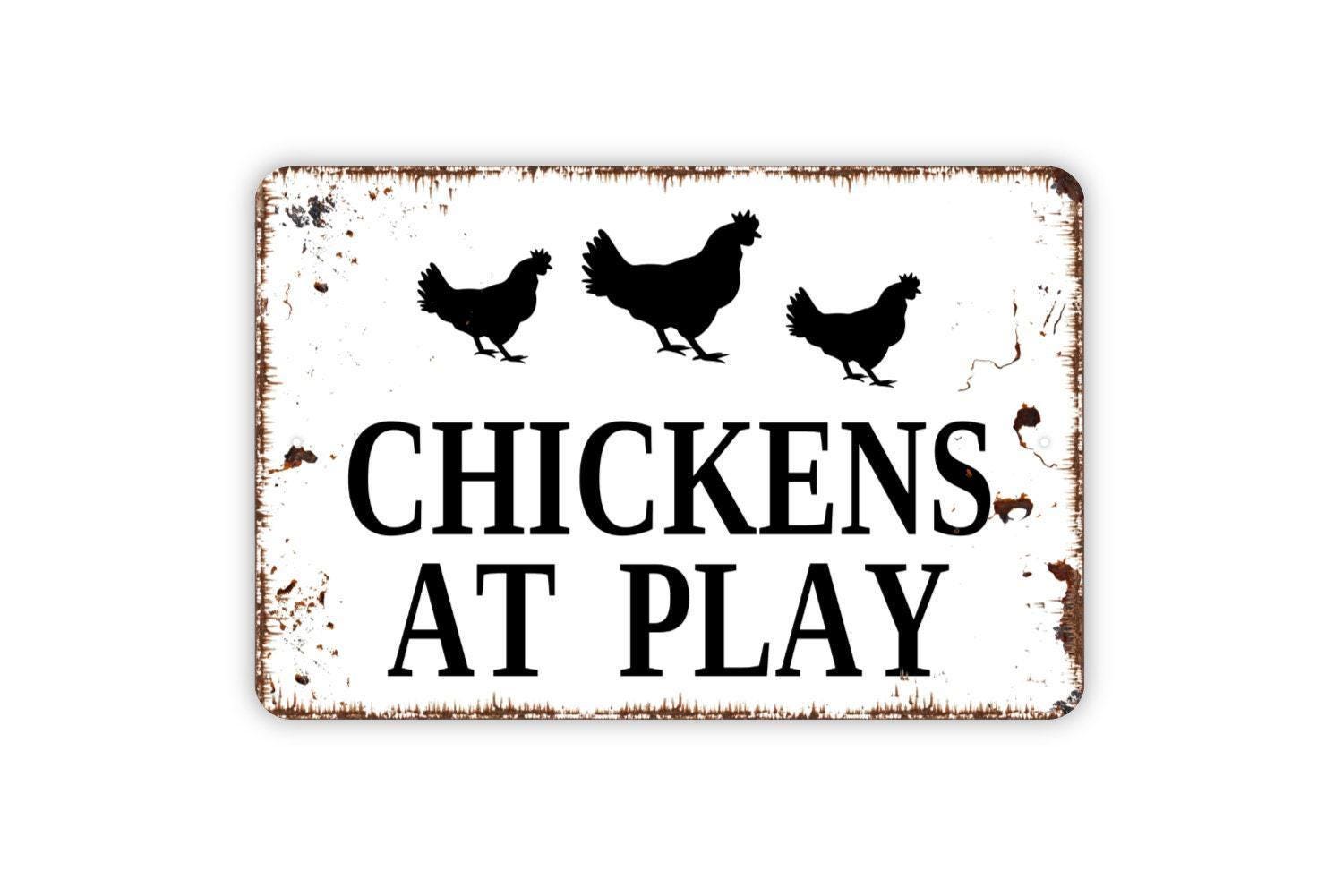 Chickens At Play Sign - Funny Coop Metal Wall Art - Indoor or Outdoor