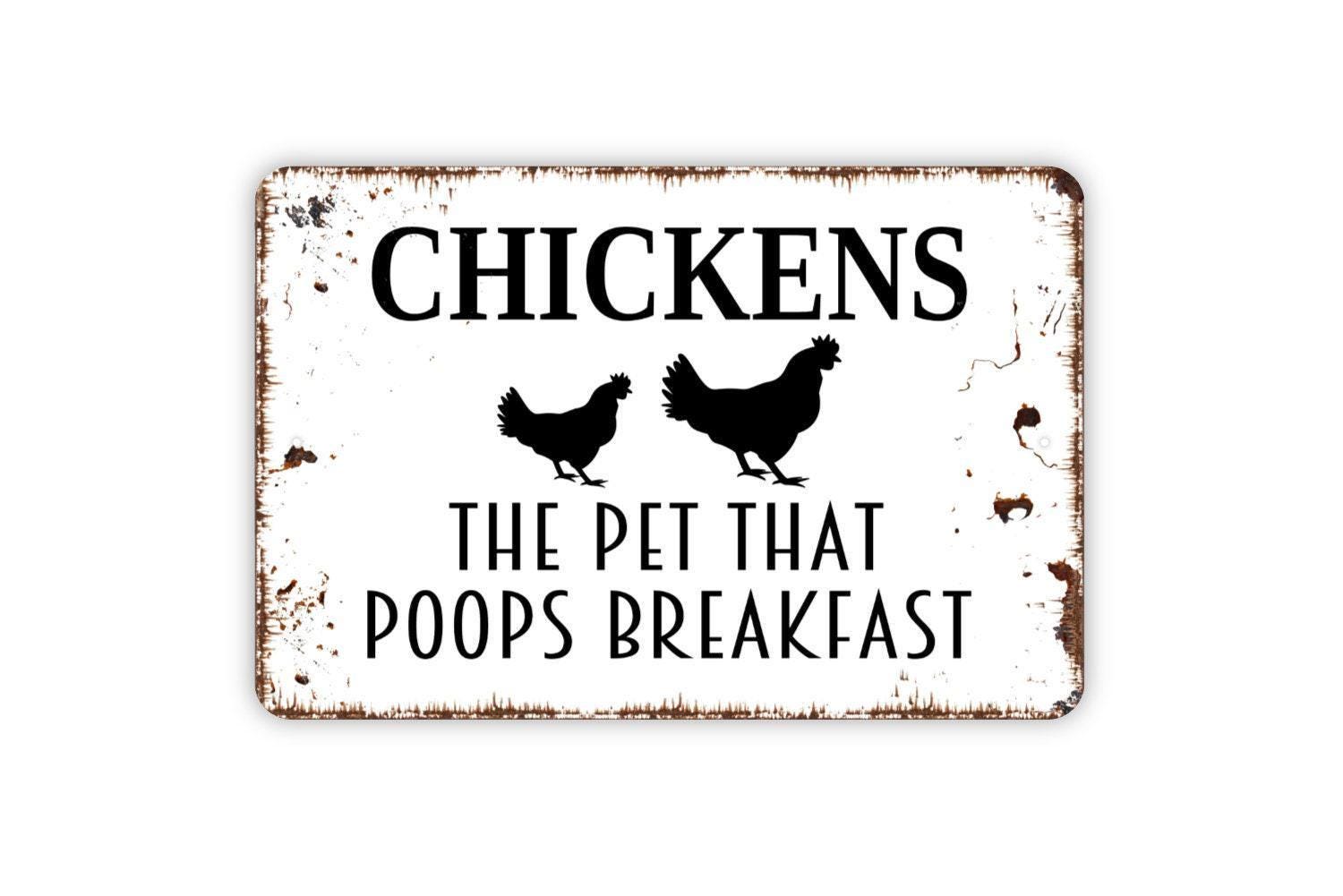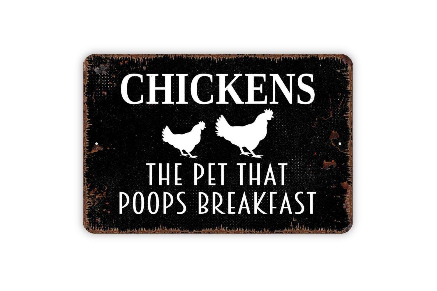 Chickens The Pet That Poops Breakfast Sign - Funny Metal Indoor or Outdoor Wall Art