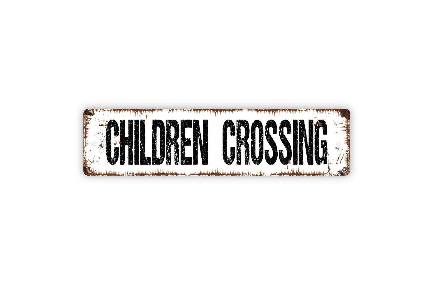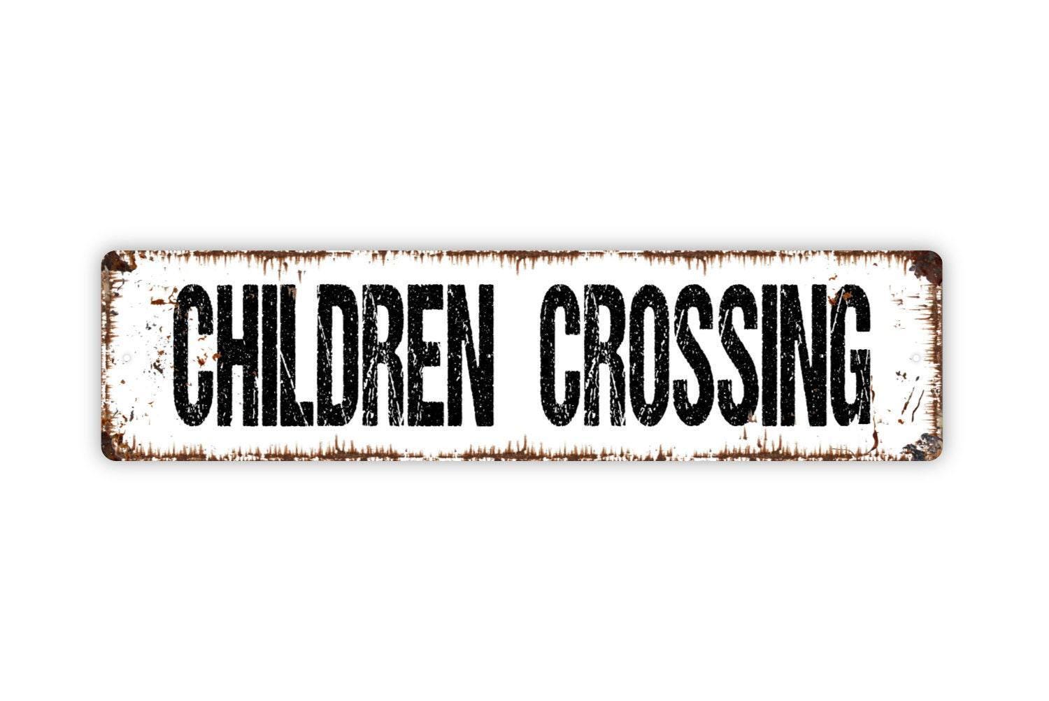 Promote safety with this Children Crossing Sign or just fun in our children's hallway, available in multiple sizes as a metal sign or vinyl sticker. Perfect for yards, driveways, neighborhoods, schools, and playgrounds, this rustic farmhouse-style wall décor provides a clear reminder to slow down and watch for kids. Functional and decorative, it’s also a thoughtful gift for families, schools, or community spaces that want to blend safety with style.