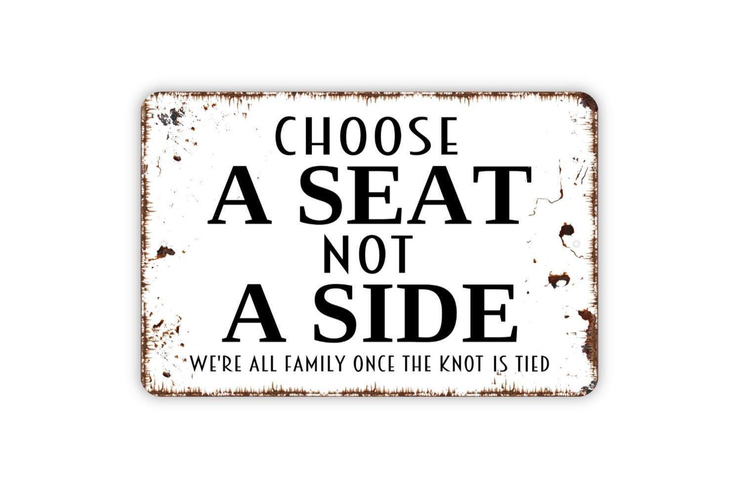 Choose A Seat Not A Side Sign - Wedding Metal Wall Art - Indoor or Outdoor