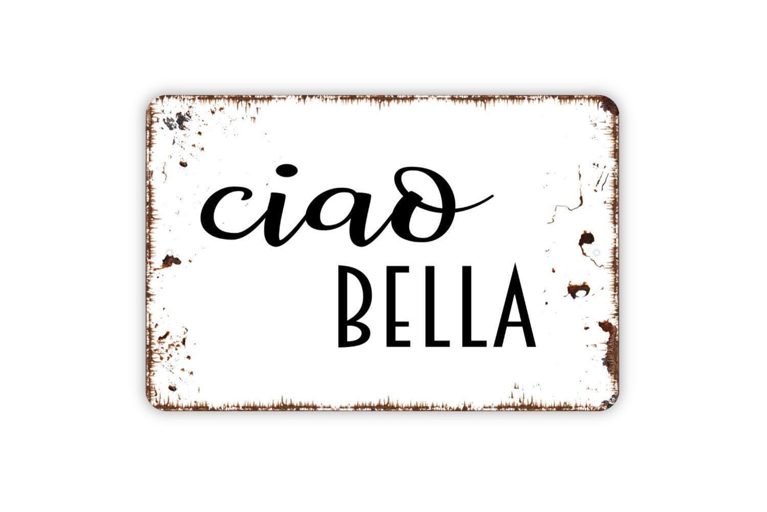 Ciao Bella Sign – Italian Kitchen Dining Room Wall Decor – Rustic Farmhouse Italy Themed Home Sign – Metal Sign or Sticker