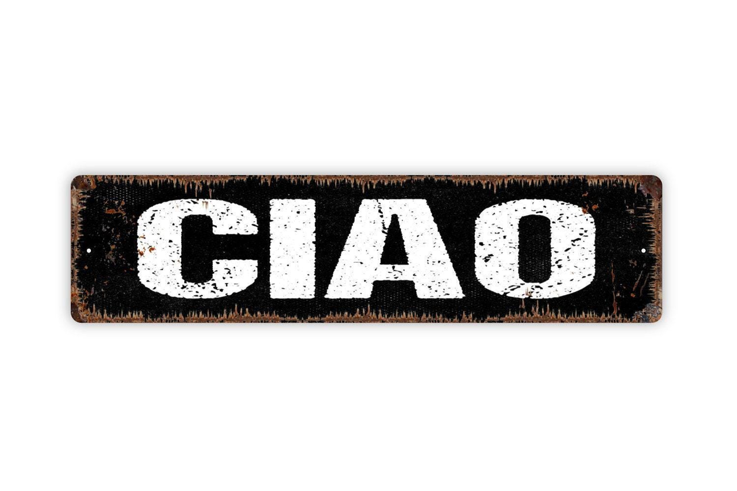 Ciao Sign - Hello Goodbye Italian Greeting Welcome To Our Home Vinyl Sticker Or Street Metal Sign or Door Name Plate Plaque