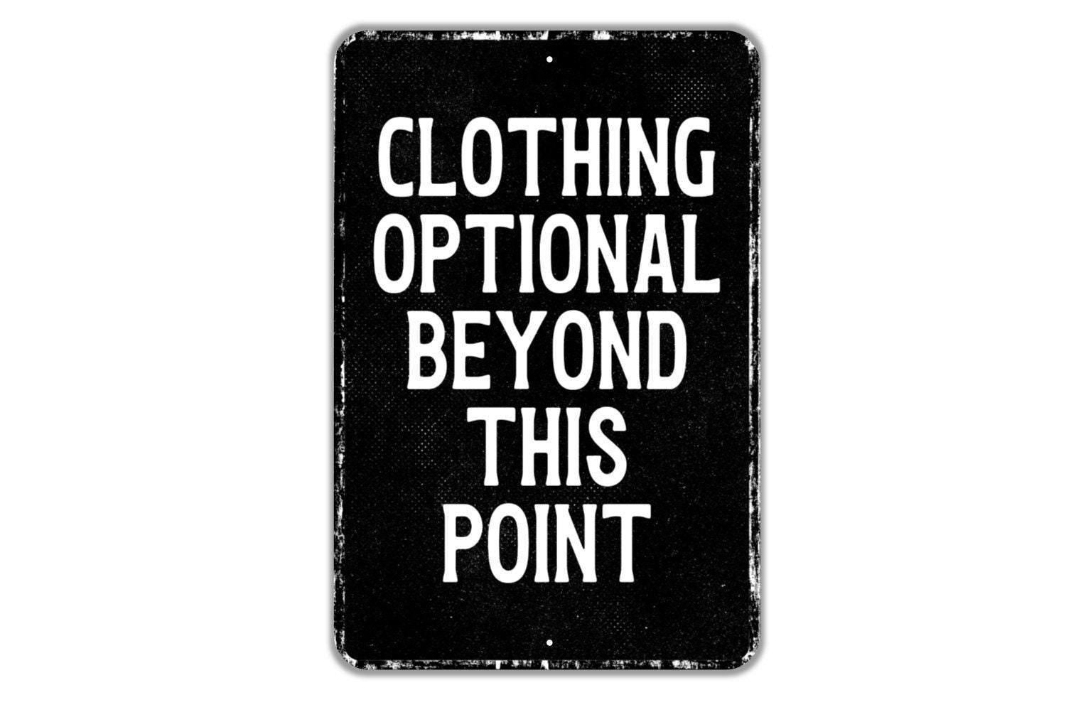 Clothing Optional Beyond This Point Sign Funny Metal Wall Art or Vinyl Sticker for Pool, Hot Tub, Patio, Beach House, Bar, Outdoor Humor