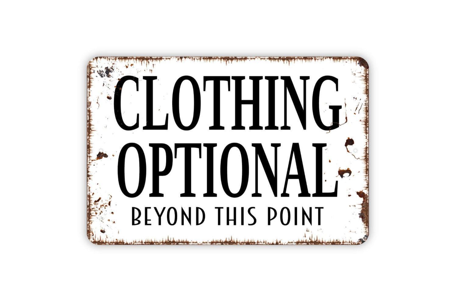Add humor and personality to your space with this Clothing Optional Beyond This Point Sign, available in multiple sizes as a metal sign or vinyl sticker. Perfect for pools, patios, hot tubs, tiki bars, man caves, or beach houses, this rustic wall décor sets the tone for fun and relaxation with a cheeky twist. Great for indoor or outdoor use, it also makes a playful gift for friends, couples, or anyone who enjoys entertaining with a sense of humor.