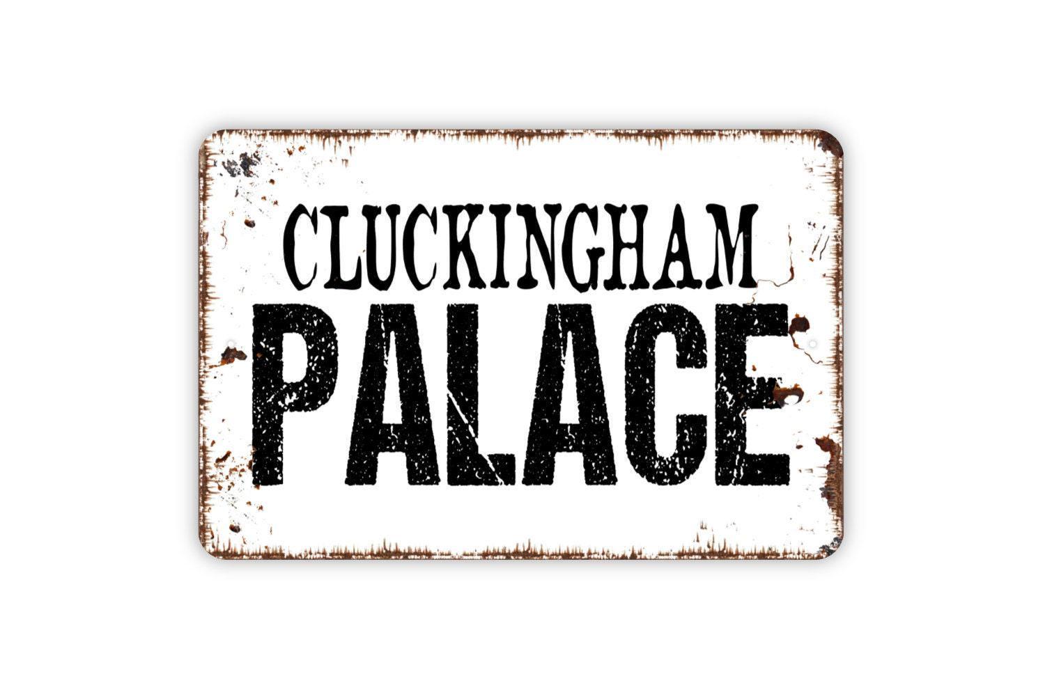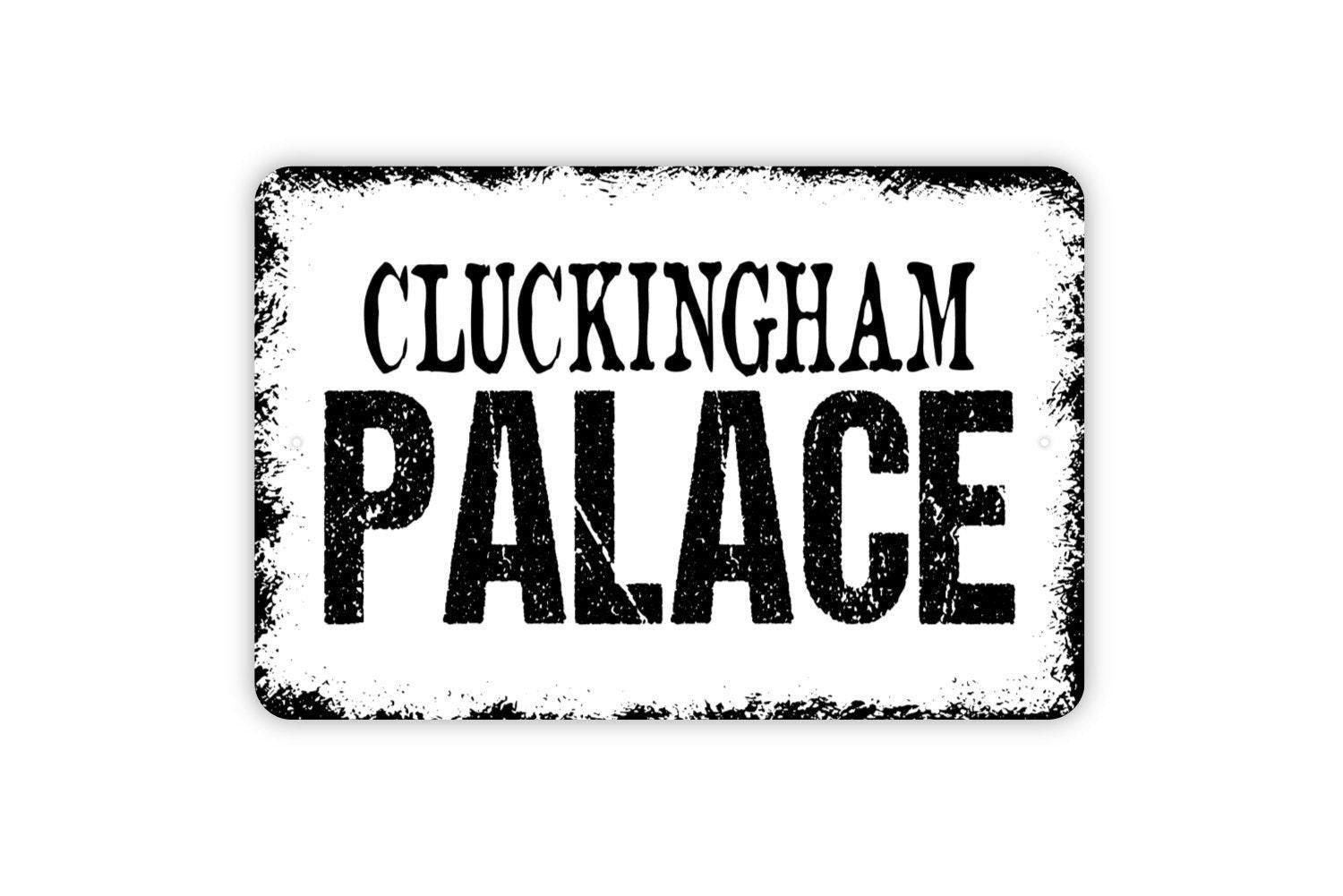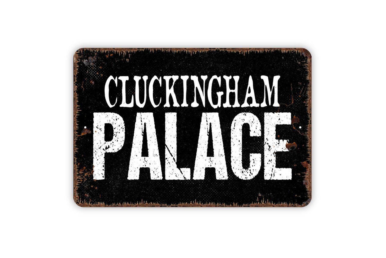 Cluckingham Palace Sign | Funny Chicken Coop Wall Sign for Barn, Yard, or Garden | Rustic Farmhouse Metal Sign or Vinyl Sticker Hen House