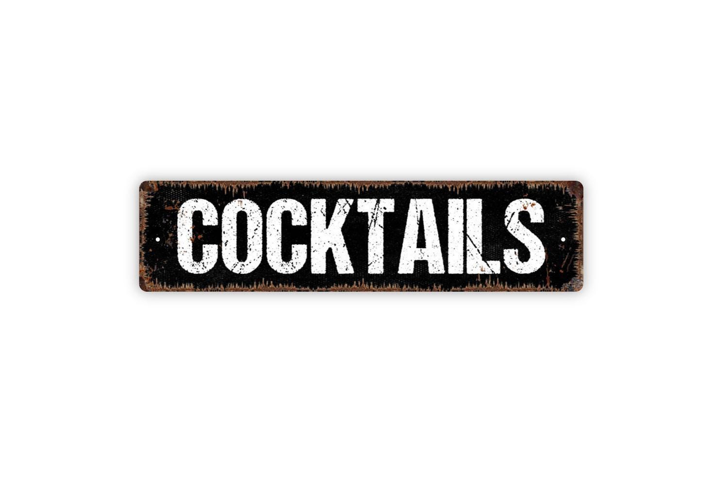 Cocktails Sign - Bar Pub Drinks Mocktails Vinyl Sticker Or Street Metal Sign or Door Name Plate Plaque