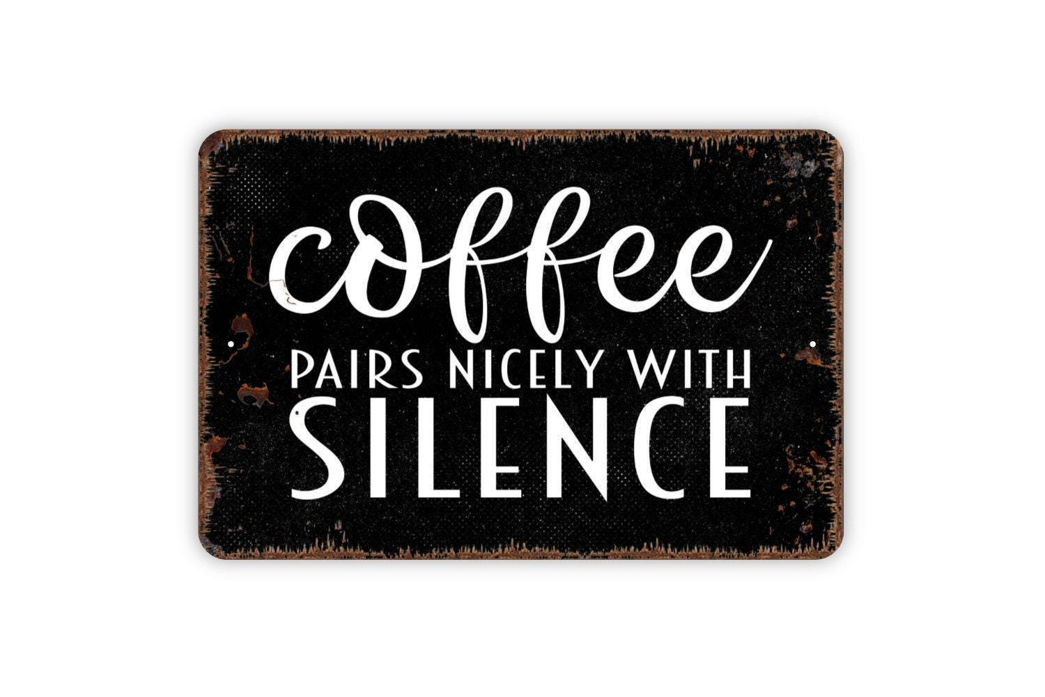 Coffee Pairs Nicely With Silence Sign - Funny Kitchen Bar Metal Indoor or Outdoor Wall Art
