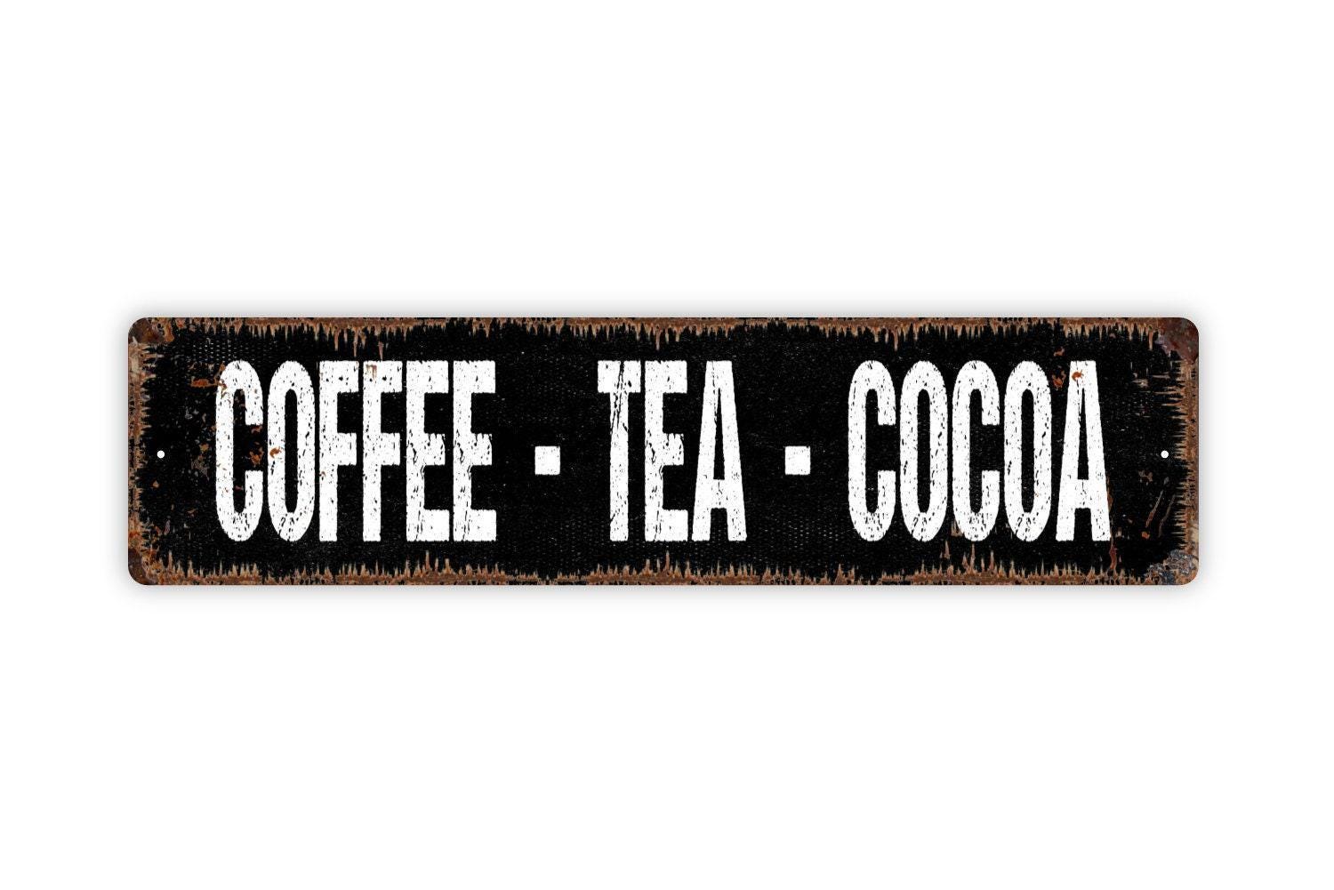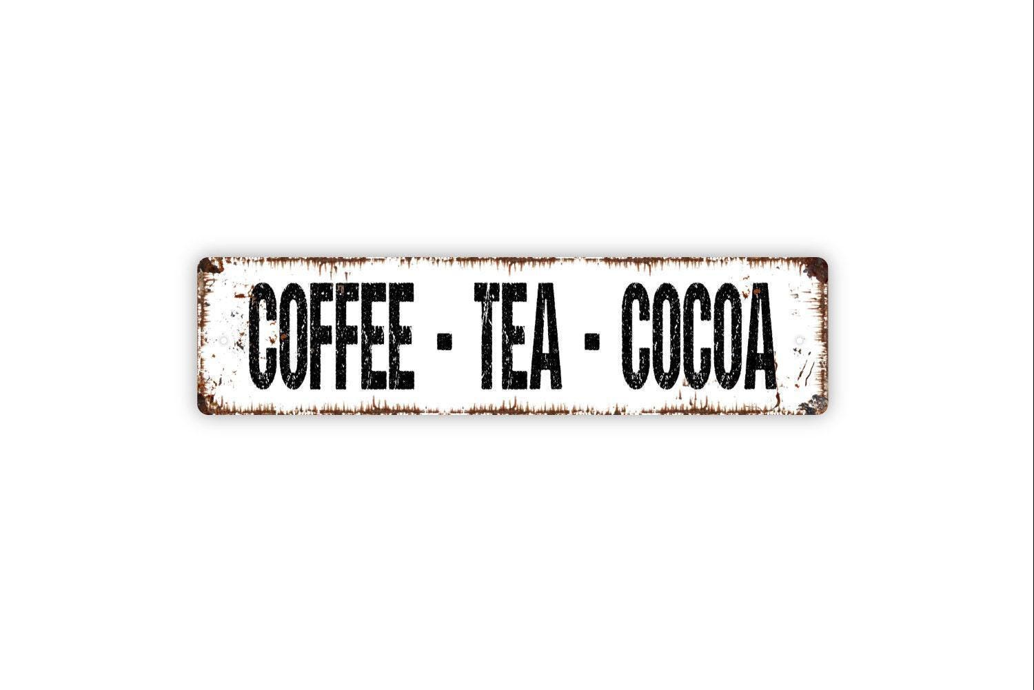 Coffee Tea Cocoa Sign - Vinyl Sticker Or Metal Street Sign or Door Name Plate Plaque