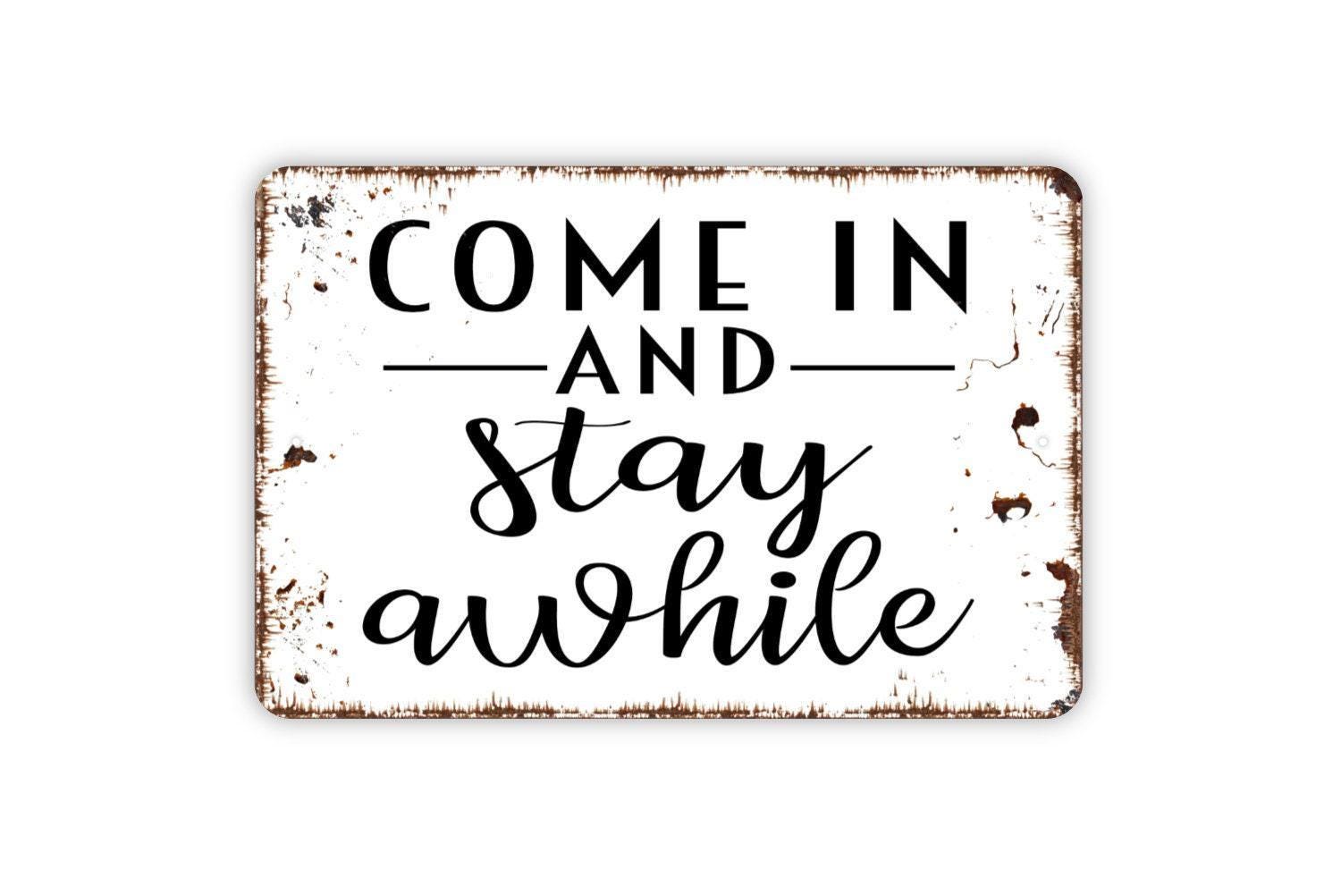 Come In And Stay Awhile Sign - Welcome To Our Home Metal Indoor or Outdoor Wall Art