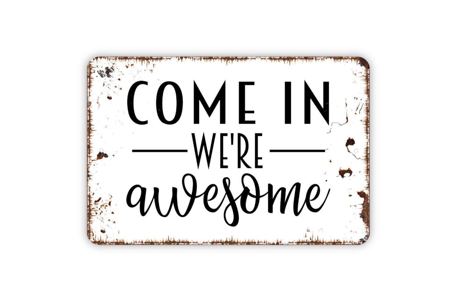 Come In We're Awesome Sign - Funny Welcome To Our Home Metal Indoor or Outdoor Wall Art