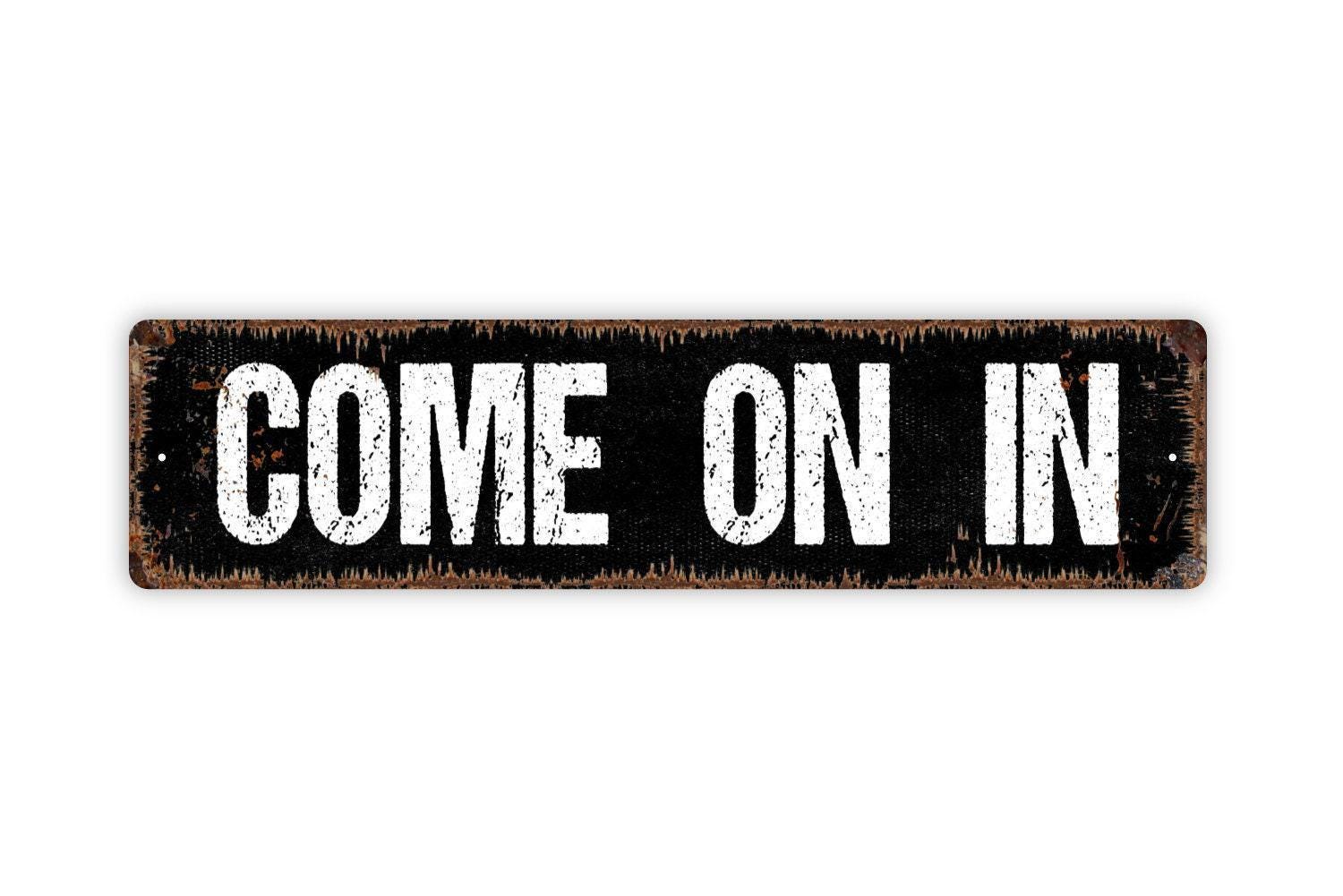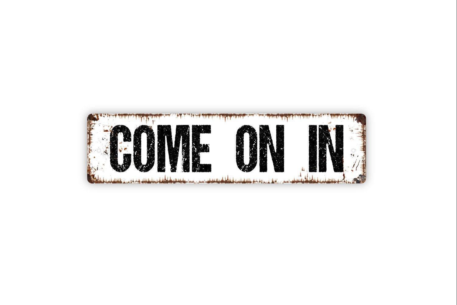 Come On In Sign - Welcome Gather Here Vinyl Sticker Or Street Sign or Door Name Plate Plaque