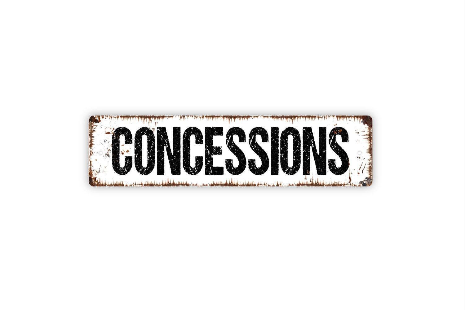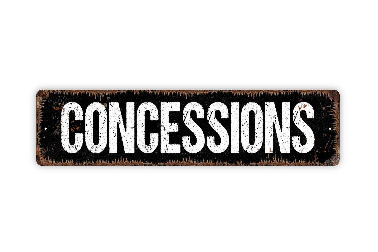 Concessions Sign | Rustic Snack Bar Wall Decor | Movie Theater or Carnival Sign | Custom Metal Sign or Vinyl Sticker | Food Stand Wall Art