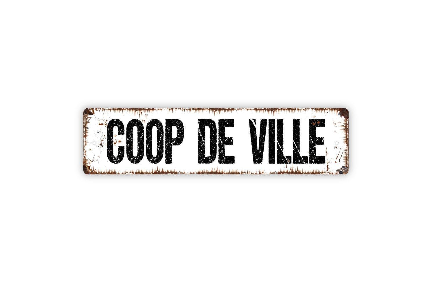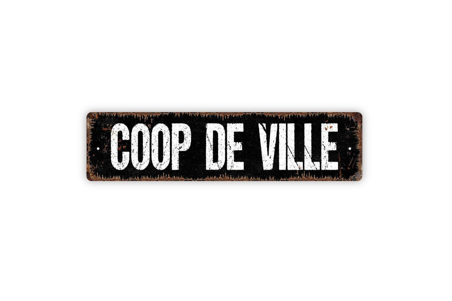 Coop De Ville Sign – Funny Chicken Coop Hen House Farm Barnyard Wall Decor – Rustic Farmhouse Poultry Sign – Metal Sign or Sticker