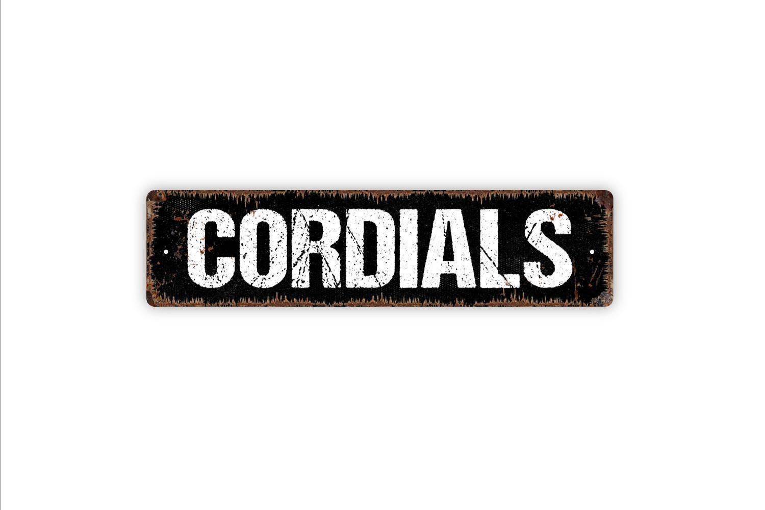 Cordials Sign - Liquor Alcohol Signage Custom Vinyl Sticker Or Street Metal Sign or Door Name Plate Plaque