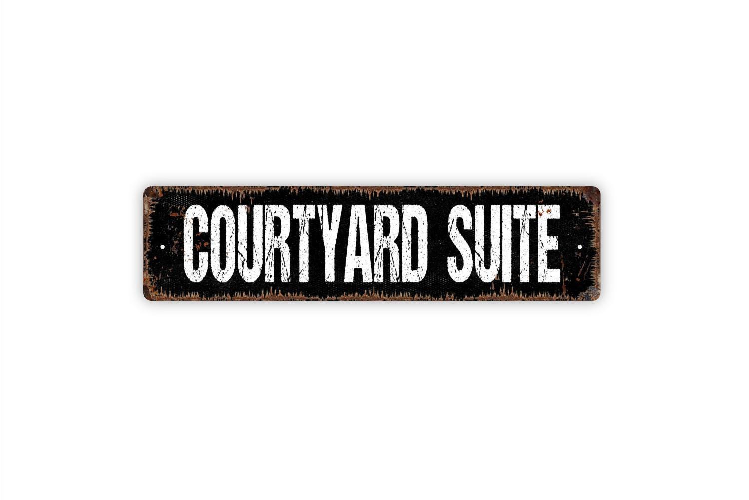 Courtyard Suite Sign - Bed And Breakfast Vacation Rental Welcome To Our Home Vinyl Sticker Or Street Metal Sign or Door Name Plate Plaque