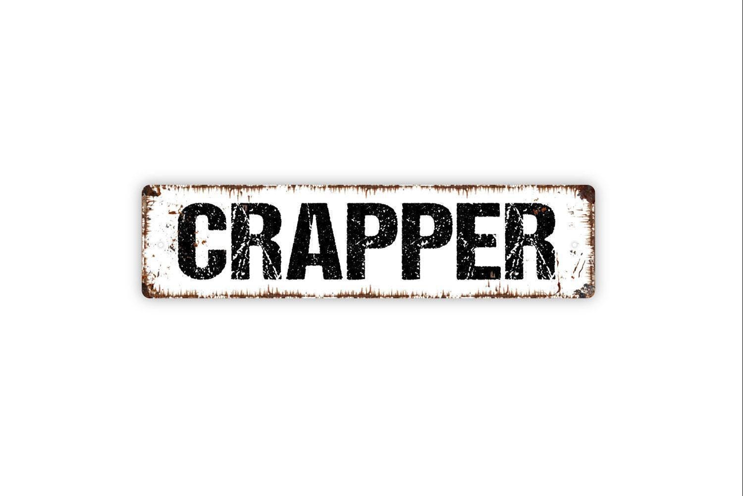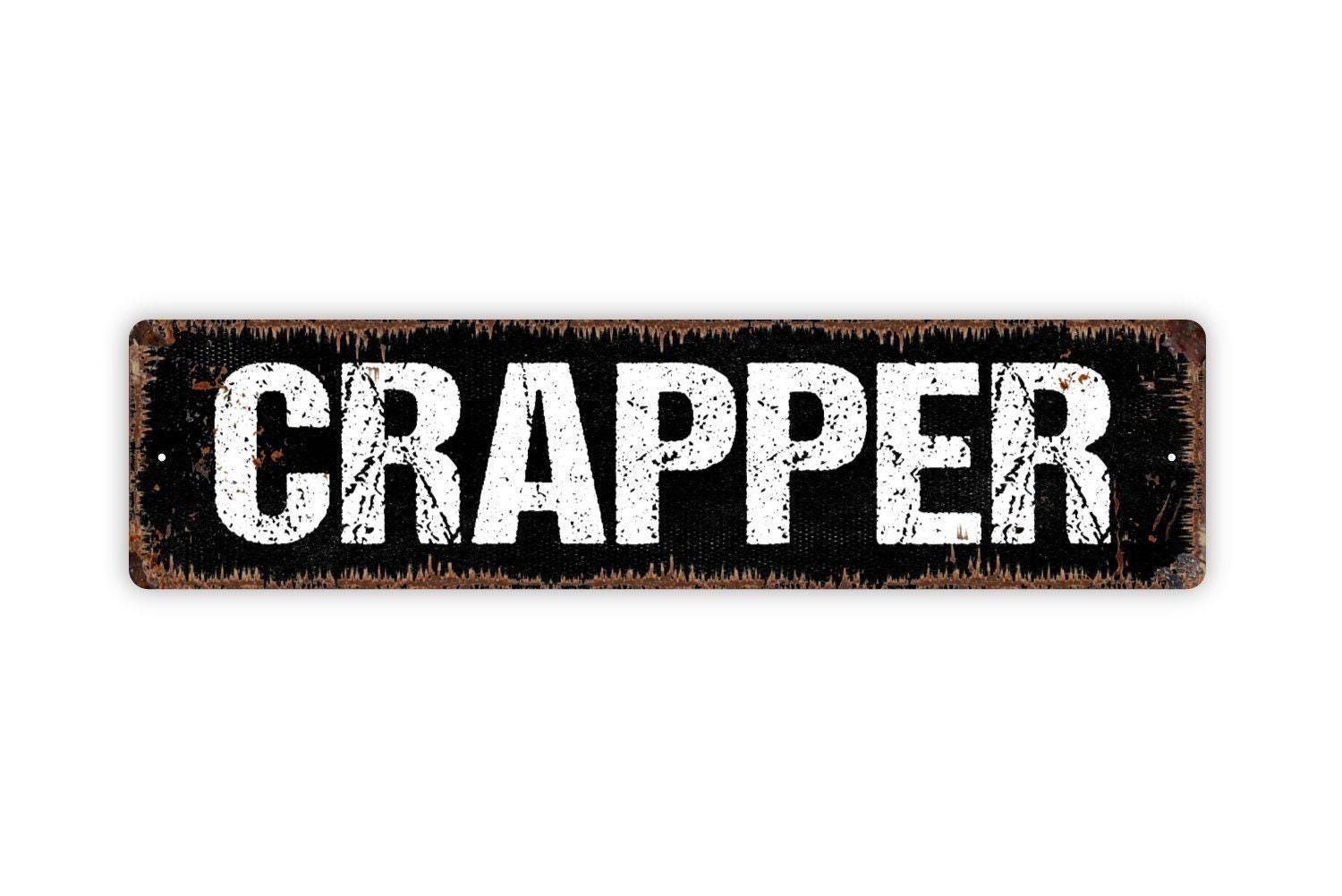 Crapper Bathroom Sign - Restroom Toilet Vinyl Sticker Or Metal Street Sign or Door Name Plate Plaque