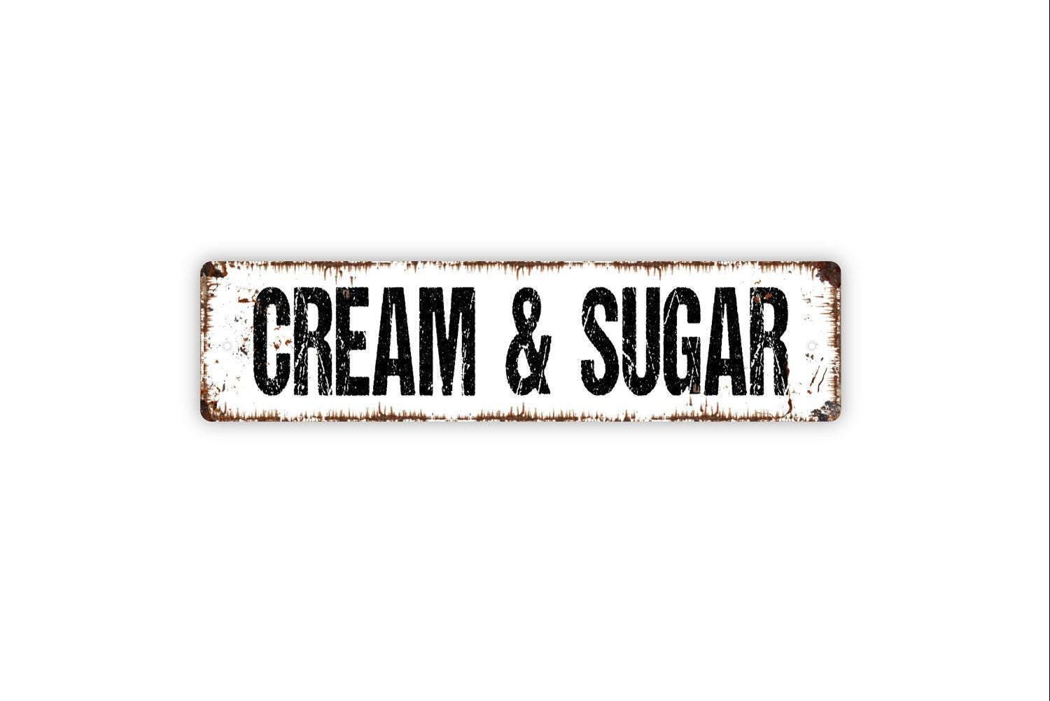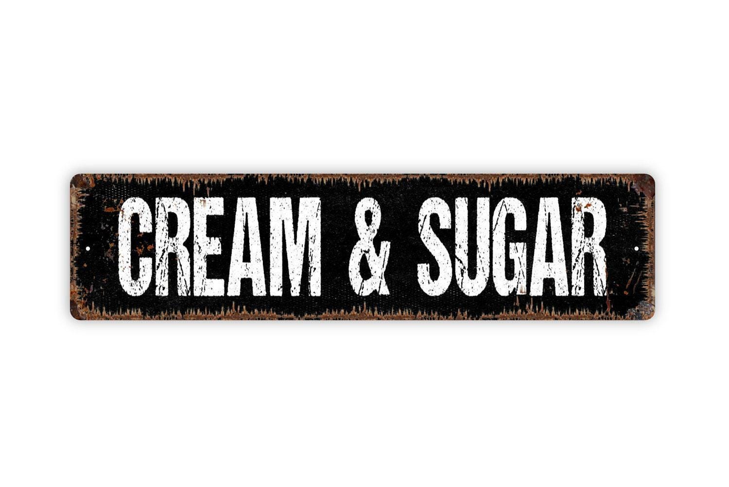 Cream & Sugar Sign - Coffee Bar Coffeehouse Kitchen Pantry Vinyl Sticker Or Street Metal Sign or Door Name Plate Plaque