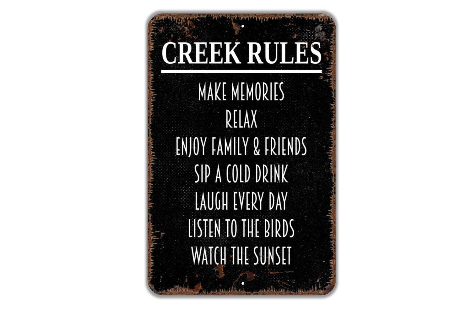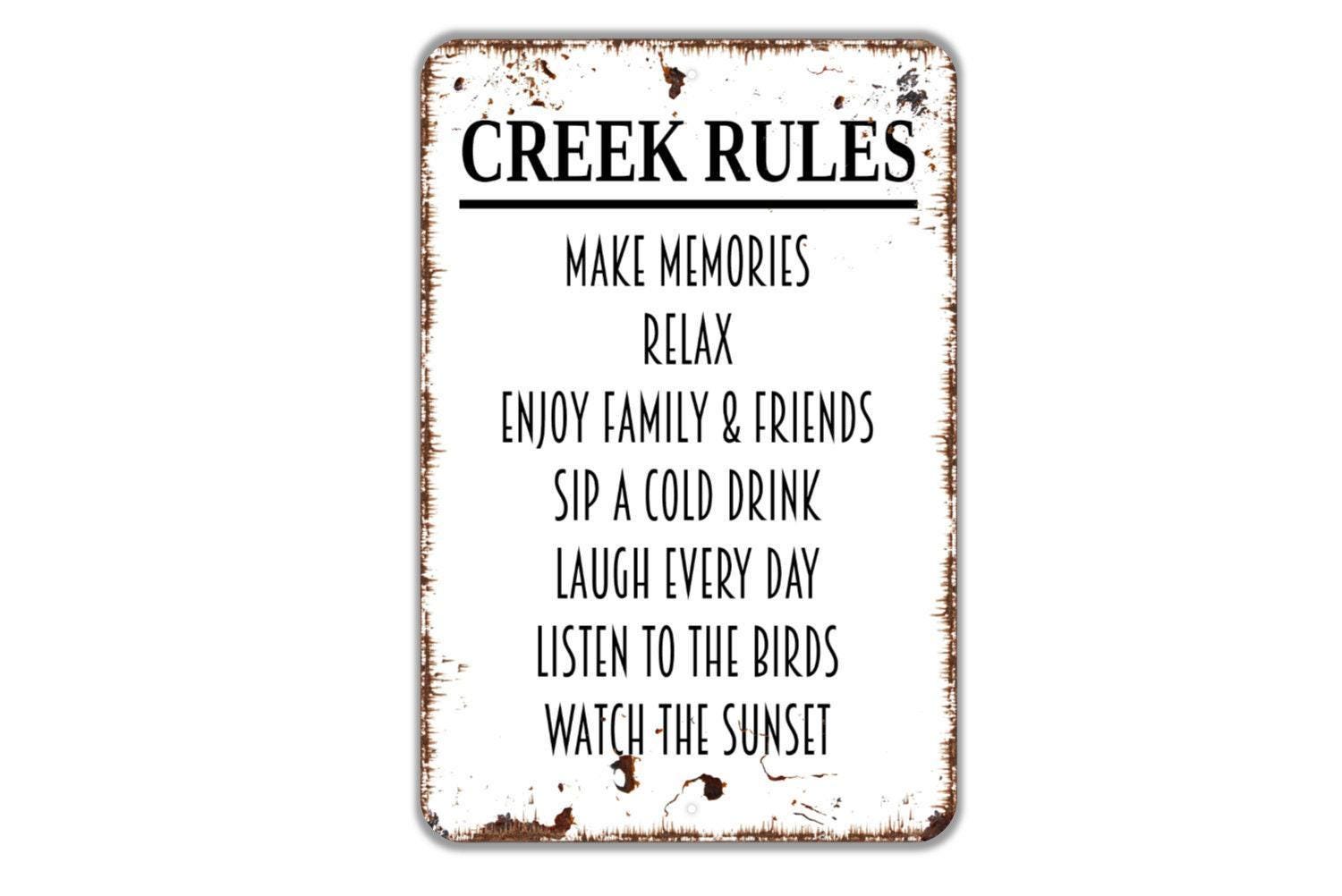 Creek Rules Sign - Make Memories With Family and Friends Metal Wall Art - Indoor or Outdoor