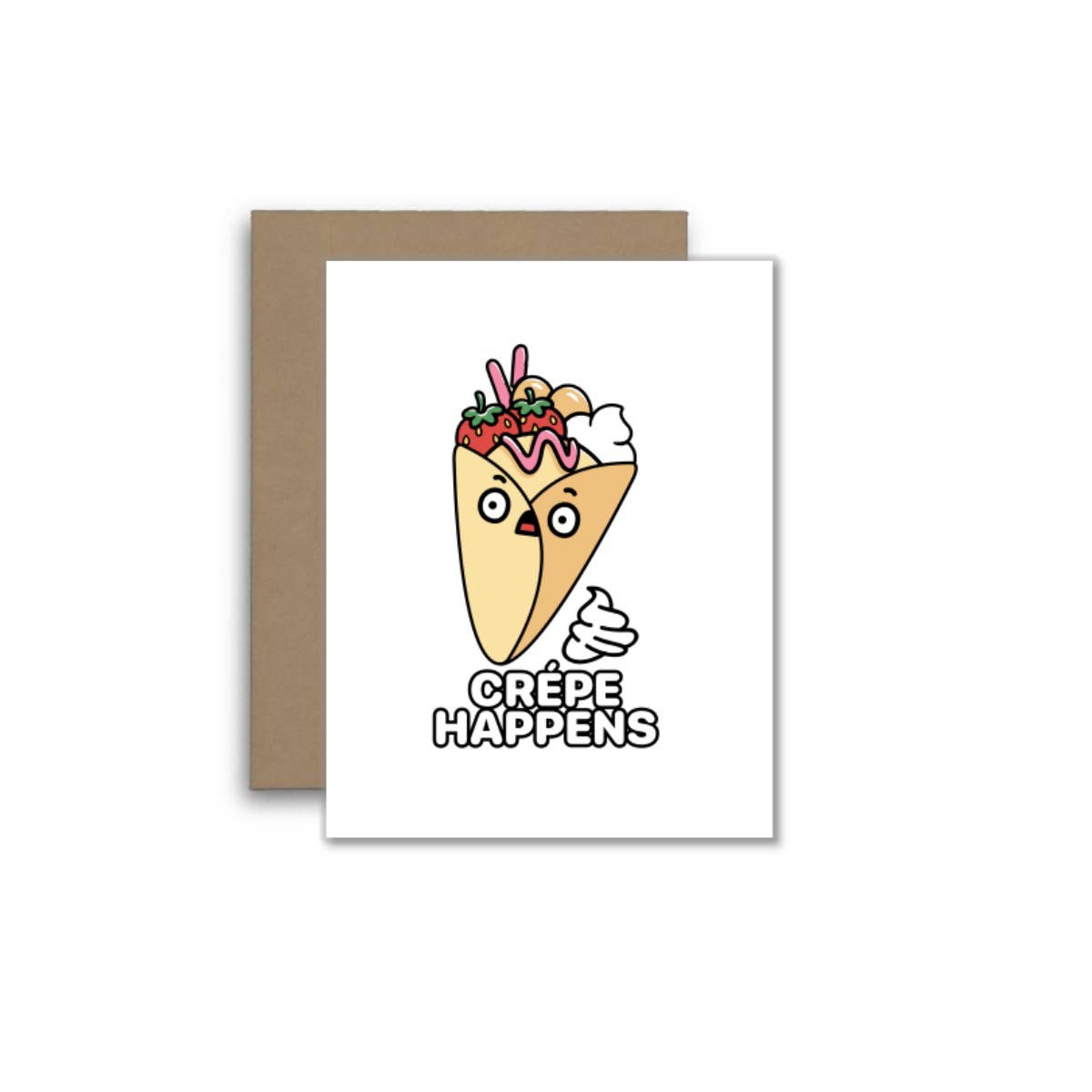 Serve up a laugh with this “Crepe Happens” greeting card, featuring a playful crepe illustration. Perfect for birthdays, congratulations, or just-because moments, this pun-filled design is great for foodies, brunch lovers, and anyone who enjoys a little humor with their sweets.