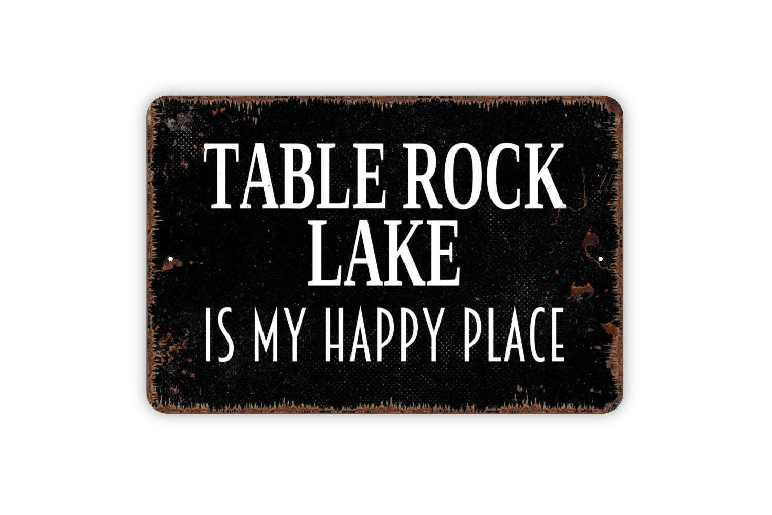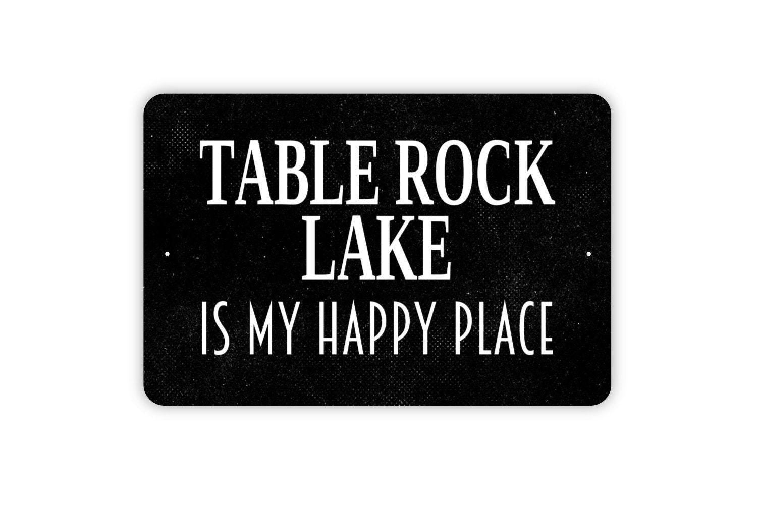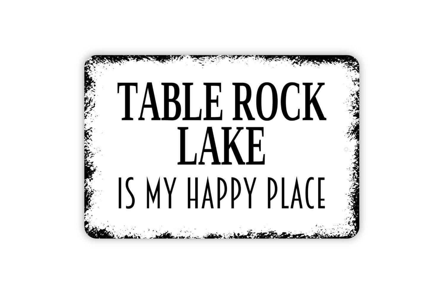 Custom Personalized Lake Is My Happy Place Sign - Table Rock Lake Life Boating Fishing Indoor or Outdoor Metal Wall Art