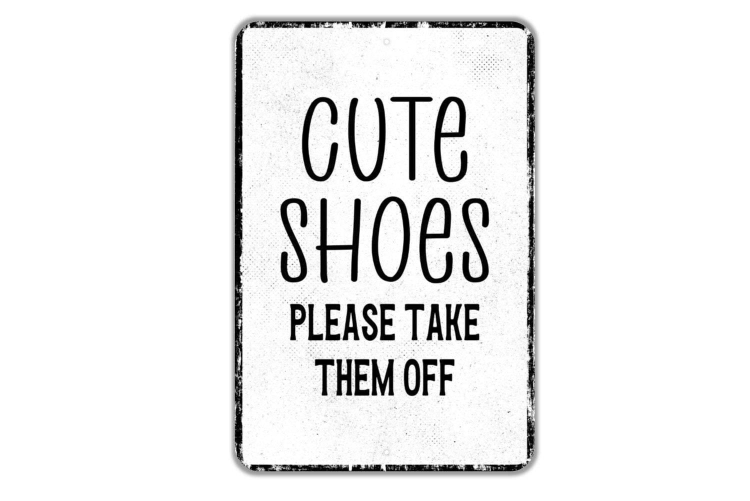 Cute Shoes Please Take Them Off Sign Metal Wall Art or Vinyl Sticker for Entryway, Porch, Mudroom, Front Door, Funny Shoe Reminder